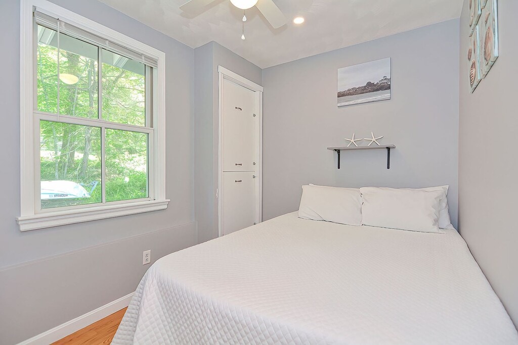 Winter Rental Available: December 22, 2025 -May 15, 2026 Just a half mile walk from Gloucester's Good Harbor Beach, Joseph's Way is a delightful two-bedroom rental nestled on a quiet hidden side street with just 4 other houses. Freshly renovated and decorated, enjoy the ease of one-level living with a spacious open plan dining/living room which expands to the fully-applianced kitchen and breakfast bar. Past the kitchen is the full bath with a walk-in shower and a washer/dryer. Further down are two bedrooms and a second sitting area that opens to the deck. Dine al fresco on the spacious deck which overlooks a private wooded lot. Parking for 2+ cars in driveway. One dog OK with landlord's approval. Utilities included. Electric/heat included up to $250/mo. First, last & a half month's security deposit due at signing No smoking. No events or parties.