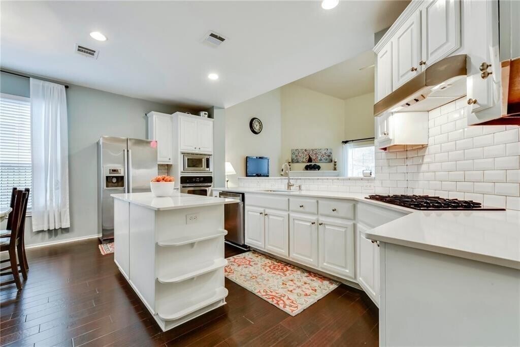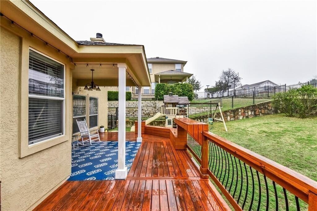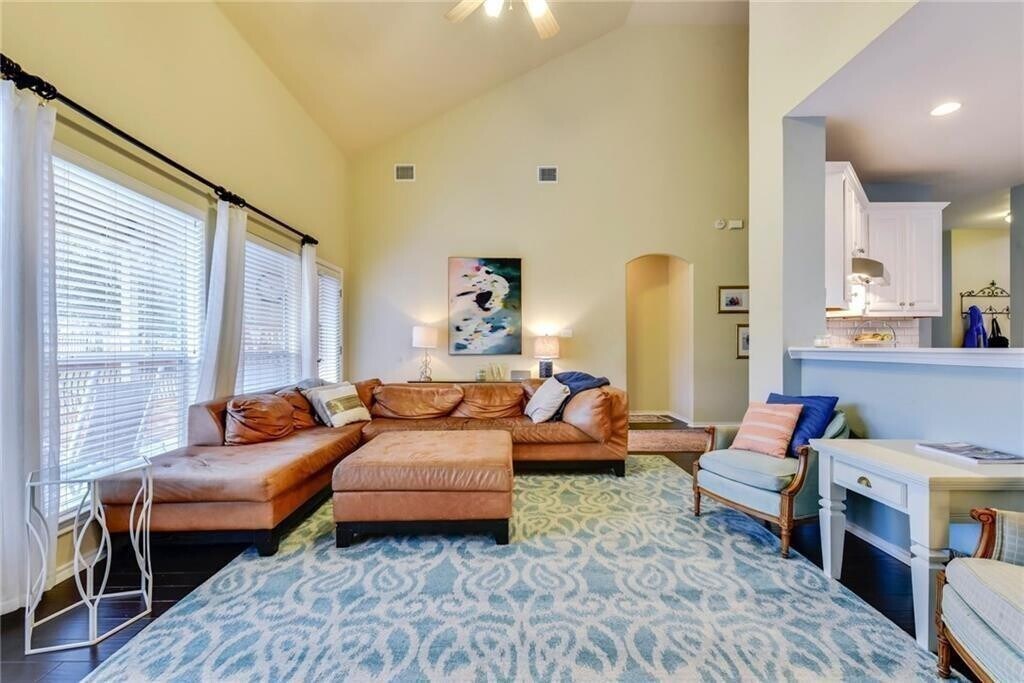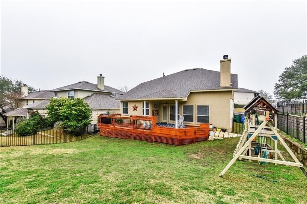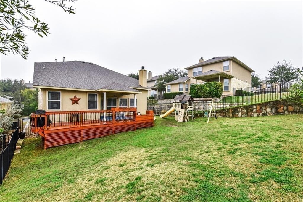 Immaculate home in the heart of Lakeway featuring hardwood floors on the main level, soaring ceilings, and abundant natural light. The updated kitchen offers quartz countertops, crisp white cabinetry, beveled subway tile backsplash, and stainless appliances. The spacious primary retreat includes a recently renovated bath and an oversized walk-in closet. Enjoy the oversized, private backyard from the custom deck and covered outdoor living space, perfect for entertaining or relaxing. Upstairs bedrooms capture beautiful lake and hill country views. Additional updates include a new roof and new 4-ton dual zone HVAC system in 2017, along with a full kitchen update in 2018. All of this located within the highly acclaimed Lake Travis ISD.