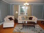 Welcome to this beautifully updated 2nd-floor unit in the heart of Brookline!This sun-drenched 2-bedroom home features gleaming hardwood floors,high ceilings,and fresh paint throughout.The thoughtfully redesigned layout includes a spacious living room with a charming fireplace,large formal dining room,and an oversized foyer-ideal for a home office or add'l seating area.The new,state-of-the-art kitchen boasts stainless steel appliances,modern cabinetry,and direct access to an enclosed porch-perfect for morning coffee or extra storage.Both generously sized bedrooms offer walk-in closets,ceiling fans,and A/C units for year-round comfort. The stunning new bathroom includes a full tub and shower.Add'l highlights include in-unit washer and dryer,a dedicated parking space next to the building,and massive private storage in the basement.Located just a short walk to Coolidge Corner and both the B and C lines (Green Line),this home offers unbeatable convenience,comfort,and style. A must-see! MLS# 73433455