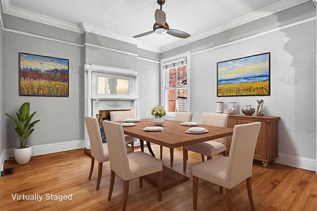 *10 N. Meadow Street, Richmond, VA in the Historic Fan District *Lovely 1800 s.f., updated 3 bedroom, 3 full bathroom home *Bright formal entry foyer with stain glass and built-in seating *Spacious living room with built-in cabinets/bookcases *Formal dining room with pocket doors and beautiful tile fireplace *Open kitchen with granite countertops, and stainless appliances *Butlers station off dining room with wine refrigerator *Primary bedroom with ensuite bath, double sink vanity, and walk-in glass shower with ball and claw tub *All 3 full bathrooms are beautifully renovated *Stunning, ornate non-working fireplaces in most rooms *Hardwood floors throughout *Newer energy efficient washer and dryer on second floor *Plantation blinds throughout, chandeliers, ceiling fans and more *Landscape backyard with detached outbuilding and brick patio *Covered back deck off kitchen and screened porch upstairs *Available immediately for only $2450.00/month, plus utilities *Minimum income requirement is $90K/year and a credit score over 640 is preferred. *Resident Benefit Package required at $30/month (ask for details) *Call 804-257-RENT or Leasing@ for showing * to view rentals and Application Criteria *CITYSCAPE REALTY, Richmond, VA, represents Landlord only *Well behaved, housebroken pet allowed (breed restrictions and fees apply) *A $395.00 lease admin fee is due at lease signing *All information deemed reliable, but not guaranteed, property offered as is *Pictures Virtually Staged *EHO