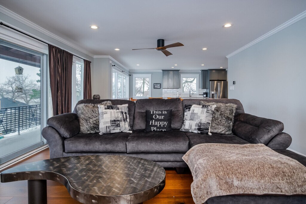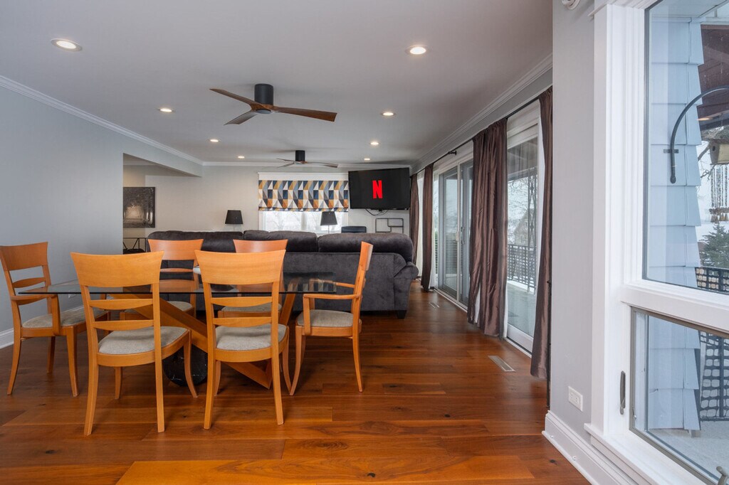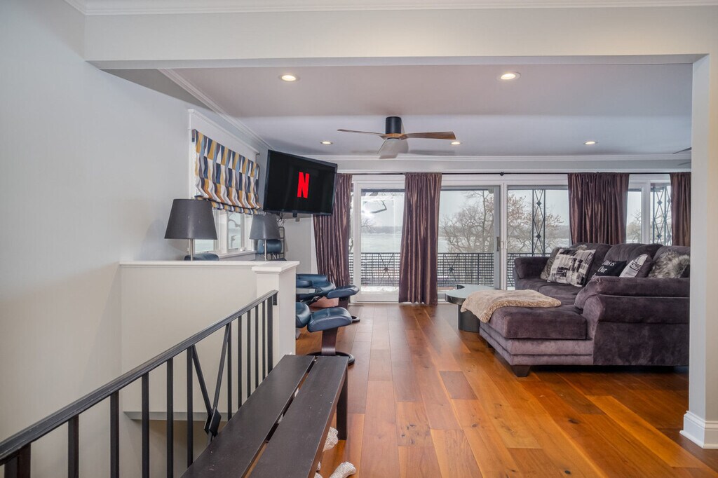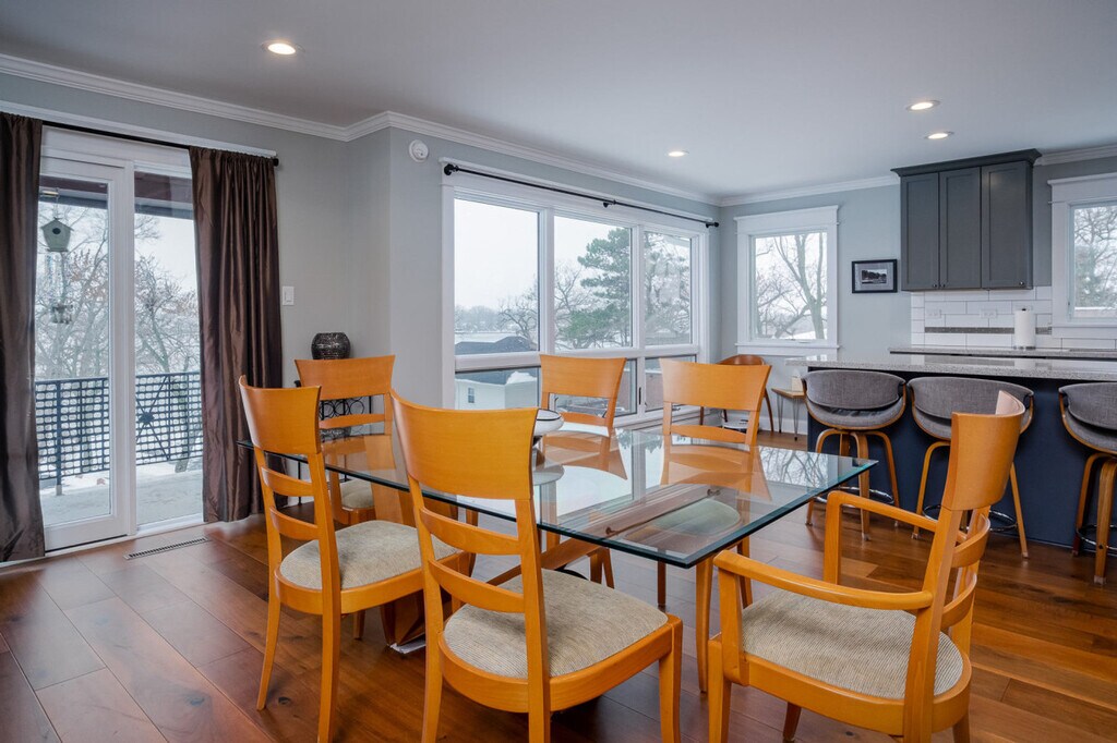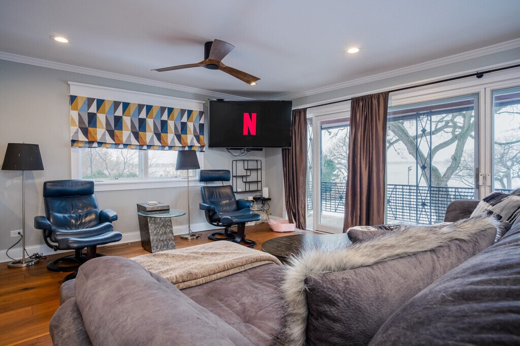 Feel at home in "The Grand View on Pistakee Lake," a stunning lakefront home on the 2nd floor with 4-bedrooms and 2-baths, perfectly positioned to capture breathtaking panoramic views over the water. This unique property offers lake life amenities and features spacious bedrooms, modern comforts, and plenty of gathering space. The fully equipped kitchen makes dining in a breeze. Enjoy access to the outdoor inground pool and private pier system during the warmer months. Amenities include central heating and A/C, free Wi-Fi, a smart TV, and a washer/dryer. Guests have access to the shoreline on Pistakee Lake. Up to 2 dogs are welcome with a small pet gate area by the entrance. Four parking spaces are available. This home is just steps from Fox Lake’s vibrant downtown and within walking distance of Dockers Restaurant and The Coffee Shop. Whether you're here for summer boating adventures, autumn sunsets, or a peaceful winter retreat, The Grand View on Pistakee Lake promises a memorable stay in the heart of the Chain O’ Lakes. No parties, events, or unregistered guests are allowed. Fireworks and adhesive or hanging items on ceilings or walls are prohibited. The home is professionally managed, and the manager's contact information will be in the welcome book upon arrival and on standby during the guest stay. [SI]