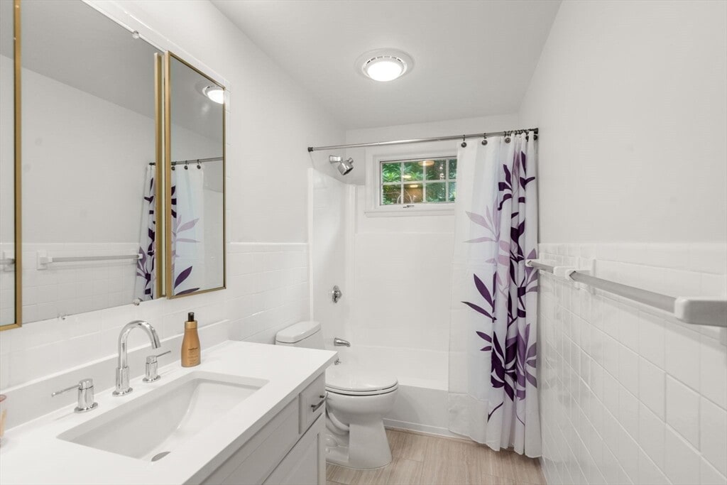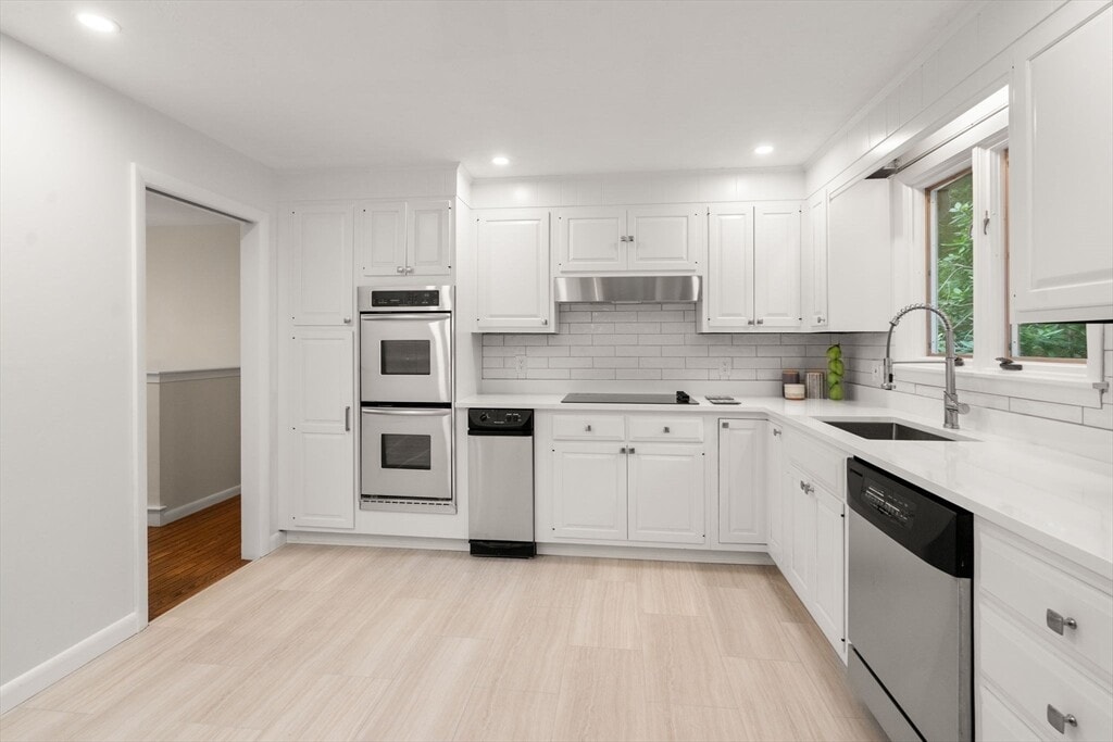 6 month rental. Recent upgrades made to this amazing home on a cul-de-sac in the new Hardy School district! White kitchen with new quartz counters and new cooktop opens to dining room with custom built-ins. Plus a great sunroom with huge windows and a very pretty private woodsy view with slider opening to deck. Living room with additional oversized windows and fireplace. Main bedroom with en suite bath. Two additional bedrooms and full bath complete the first floor. Lower level with cozy family room with another fireplace and filled with more built-ins plus full bath. Great storage and 2 car garage. Move right in and enjoy all Wellesley has to offer. Close to schools,Linden Street,Wellesley Center and trains. A great combination of privacy yet incredibly convenient! MLS# 73449796
