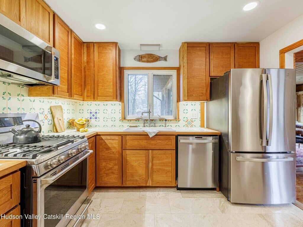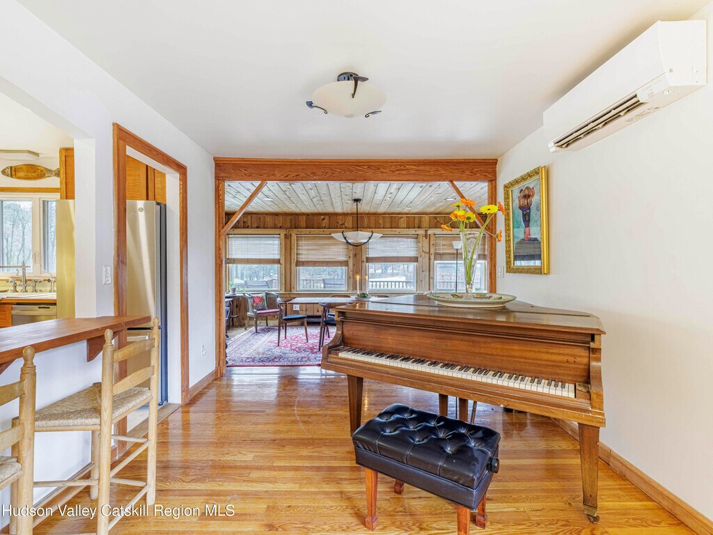 Fully Furnished Winter Seasonal Rental Opportunity Embrace winter in the Catskills in this fully furnished,beautifully renovated cedar contemporary home,ideally located in the peaceful hamlet of Zena,just five minutes from the vibrant town of Woodstock. Situated on three private acres and directly across from the 60-acre Thorn Preserve,this sanctuary offers breathtaking views of the Catskill foothills—making it the perfect winter retreat. Designed with both elegance and comfort in mind,this fully furnished home features four spacious bedrooms,including a lower-level suite with a private entrance,living area,and entertainment center—ideal for guests or extended stays. With wood-burning fireplaces in both the upper and lower living rooms,you'll enjoy cozy evenings after a day on the slopes or exploring nearby trails. Just 35 minutes from the world-class slopes of Hunter Mountain and 40 minutes to Bellayre Mountain,you'll have quick access to skiing,snowboarding,and endless outdoor adventure. After a day on the mountain,relax in one of the home's three luxurious bathrooms,all adorned with imported Italian tile,or unwind in the spacious,fully-equipped chef's kitchen with its rich cherry wood cabinetry and artisanal Spanish tile accents. The upstairs living room is a musical haven,perfect for post-ski relaxation,with a beautiful baby grand piano and sophisticated entertainment system. The expansive back deck,shaded by a retractable awning,is a perfect place to enjoy a winter sunset,sip hot cocoa by the fire pit,or host alfresco dinners with a grill. Additional amenities include a two-car garage,a dedicated laundry room,and modern climate control systems. This exceptional home blends seclusion,sophistication,and easy access to all the winter sports action the Catskills have to offer. Fully furnished and ready for you to move in,make this tranquil retreat your home base for an unforgettable winter season.