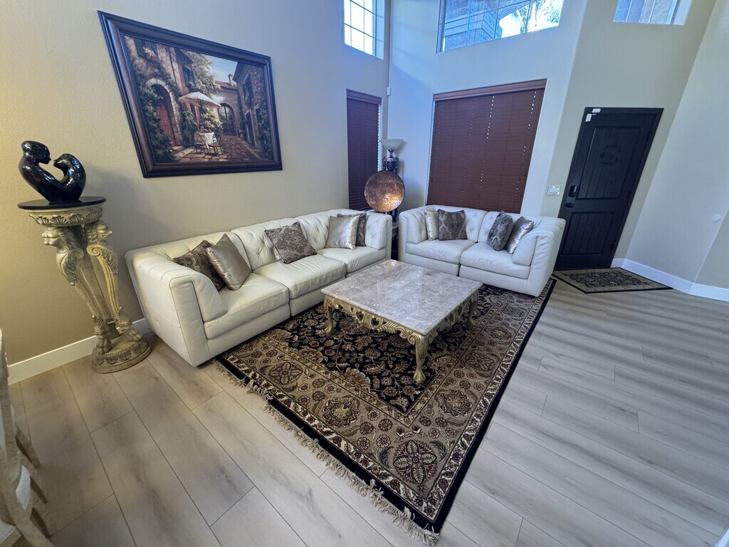 Experience refined living in this elegantly furnished residence located in one of Salinas' desirable neighborhoods. Designed with sophistication and comfort in mind, this stunning home offers 3 bedrooms and 2 bathrooms available for tenant use within a spacious, thoughtfully designed layout. Please note: while the home is originally a 4-bedroom, 3-bath residence, one bedroom, one bathroom, and the garage located on the first floor are reserved by the owner and are not included in the rental. The owner will not reside at the property. The retained space is intended solely for occasional, temporary use to handle business paperwork when visiting Salinas and will not interfere with the tenant's occupancy or privacy. Upon entry, you are welcomed by soaring ceilings, expansive windows, and an abundance of natural light, creating an impressive and airy atmosphere. The formal living and dining areas showcase elegant furnishings and tasteful décor, ideal for both everyday living and upscale entertaining. The chef-inspired kitchen features granite countertops, custom cabinetry, stainless steel appliances, and a generous center island, seamlessly connecting to the dining space. Every detail has been carefully curated to deliver both functionality and timeless style. The available bedrooms provide comfort and privacy, including a beautifully appointed primary suite. The residence is offered fully furnished as shown, providing a truly move-in-ready luxury experience. This exceptional furnished residence presents a rare opportunity to enjoy luxury living in Salinas, blending elegance, comfort, and convenience.