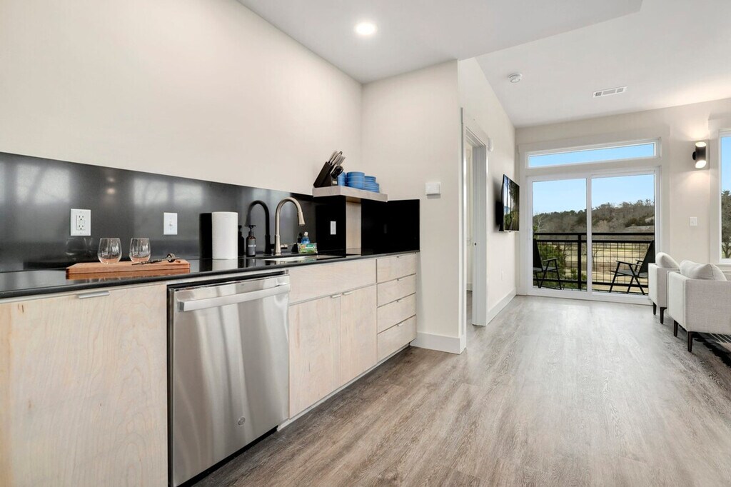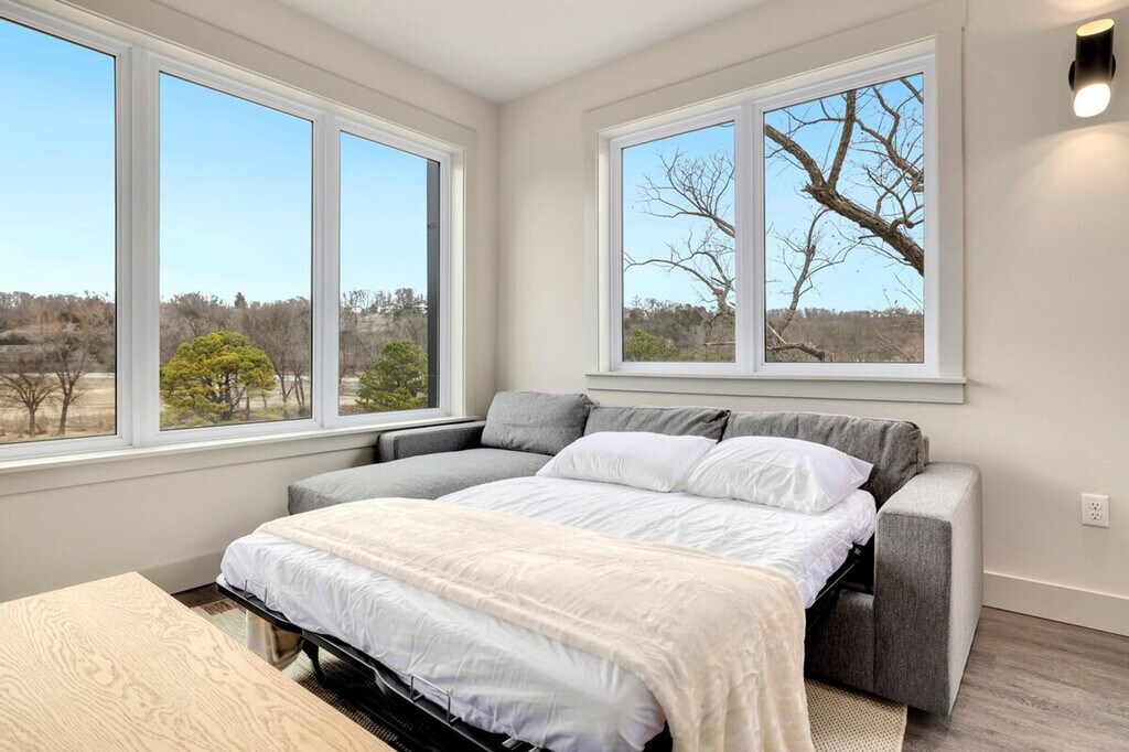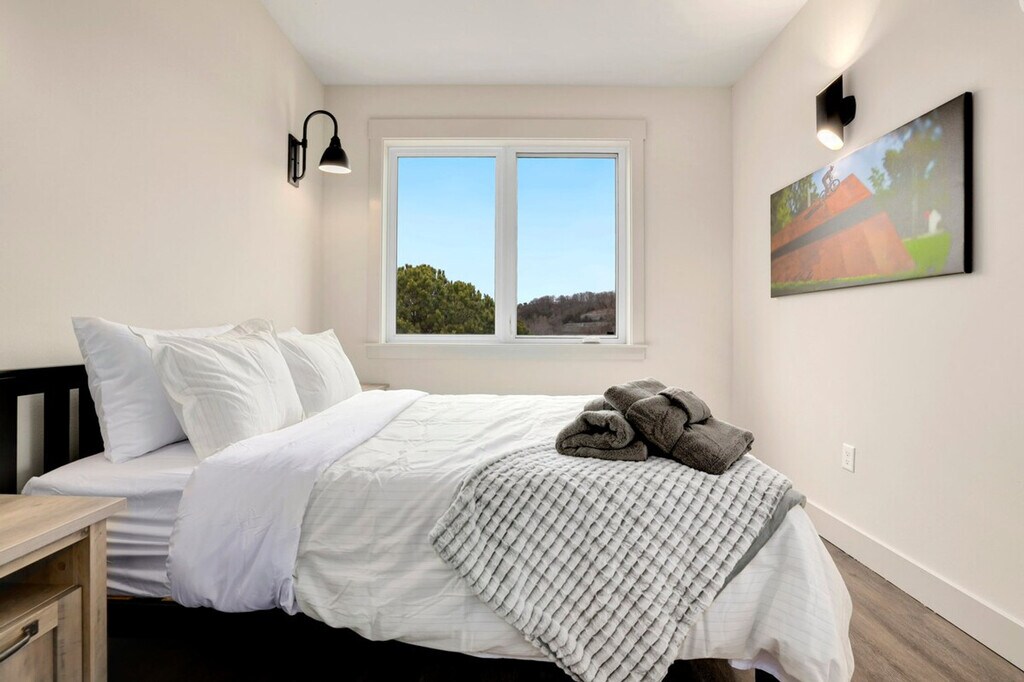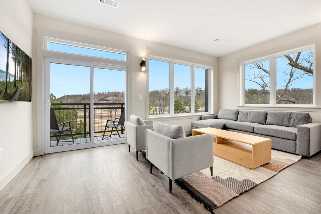 The advertised rate of $4,797/month is the lowest available price, based on a 30 day(s) stay with a move-in date of March 24, 2026. Rates vary depending on the duration of stay, season, and other parameters. For exact pricing and additional pricing components, please visit our website and enter your desired move-in and move-out dates. The rate is applicable when billed upfront; it can be higher if billed in multiple payments. Experience the Natural State at Play Thru, a 2-bedroom, 2-bathroom loft offering all the luxury amenities you need for the perfect vacation. Feel at home in this spacious apartment located within minutes of Arkansas' premiere biking trails, making it ideal for anyone looking for a little adventure. This spacious apartment features a bright, cozy living room, a kitchen with all the amenities and appliances needed for staying in, and a washer and dryer for guest use. Enjoy the dining space for 6 and relax on the back patio with seating. Cyclists will appreciate the bike storage, bike washing station, and full bike maintenance stand. Secure indoor bike parking with cameras is available in the hall of each floor. Phat Tire Bike Shop and Trail Side Coffee are conveniently located right downstairs. Guest cards are required to access amenities and must be completed listing each guest’s name in order to access amenities. A $30 processing fee is associated with this pass, and it must be paid prior to your arrival. While the pass grants access to most recreational facilities, it is not an all-access free ticket. Amenities such as pools, lakes, fitness centers, tennis, golf, etc., still require payment of applicable usage fees. The Bella Vista POA Member Services office is not open on weekends, and cards cannot be issued on those days. Located just 15 minutes from Bentonville's Entertainment District and Downtown Square, this apartment is 0.1 miles from Tunnel Vision MTB Trailhead, which is visible from the back patio. It's also 1 mile from Blowing Springs MTB Trailhead, 2 miles from Little Sugar MTB Trailhead, 2 miles from the Razorback Greenway with access to NWA's premier biking, running, and walking trails, and 3 miles from Tanyard Creek with its nature trail and waterfall. This property is not pet-friendly, and pets discovered at the property will incur a fine of $400. No parties or events are allowed unless pre-arranged with the host and the event fee has been paid; unapproved parties or events will incur a fine of $1000. Unauthorized checkout delays will incur a fine of $100 per hour. Smoking is prohibited in the home, and smoking in the home will incur a fine of $1000 plus the cost of any necessary smoke remediation. Quiet hours are observed between 10:00 PM and 10:00 AM. Check-in is any time after 3:00 PM. [SI]