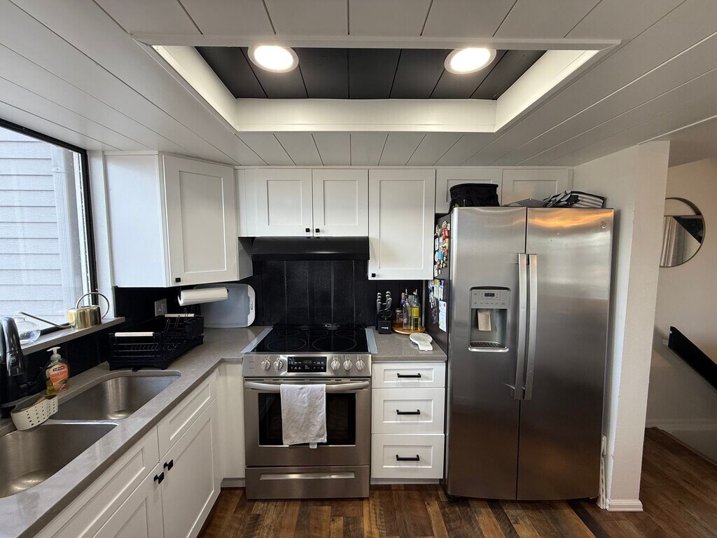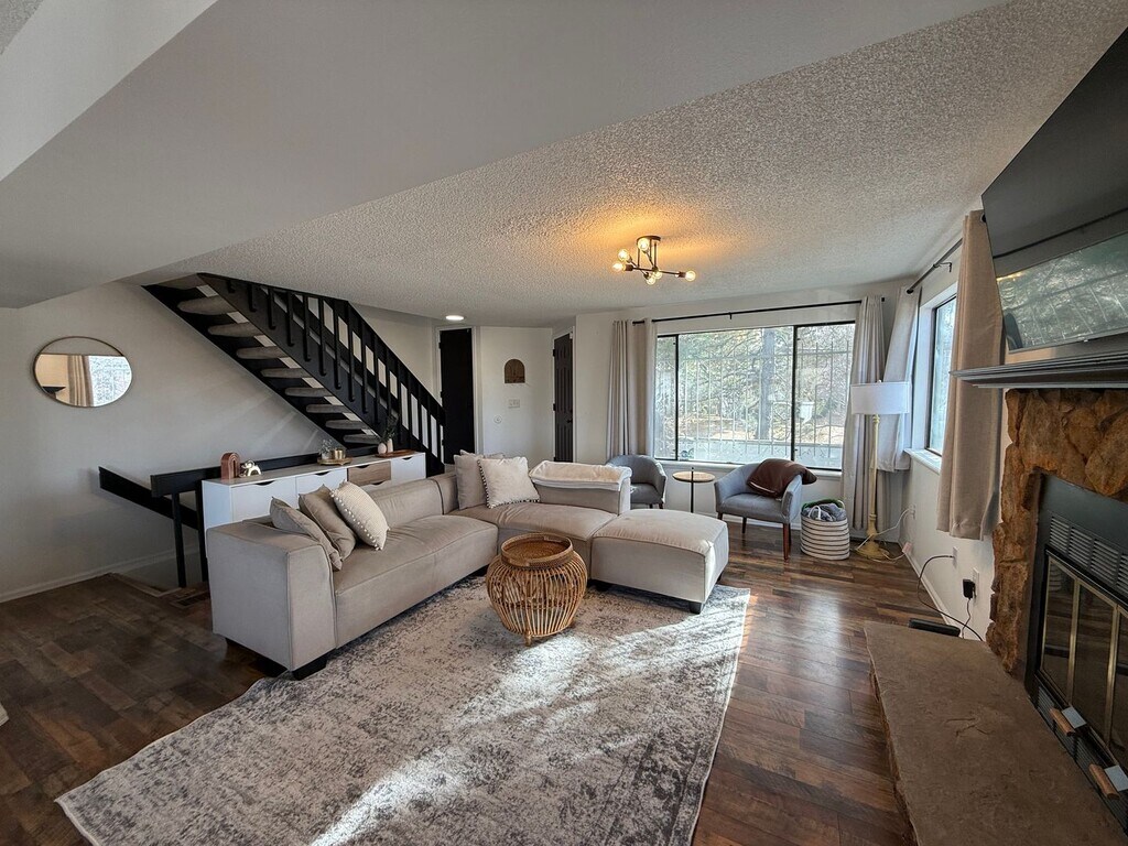 This charming 2-bedroom, 2-bathroom home has been thoughtfully refreshed throughout, starting with a modern kitchen featuring white shaker soft-close cabinets, quartz countertops, a breakfast bar, and stainless steel appliances. The wide-open main floorplan—including a dedicated dining area—offers plenty of space to entertain or simply relax by the cozy gas fireplace. Both the primary en suite bath and the full main bath have been beautifully updated with modern tubs, vanities, fixtures, and stylish tile on the walls and floors. Upstairs, the bedrooms feature soft StainMaster carpet for added comfort, while the main level boasts easy-to-maintain luxury laminate plank flooring. Enjoy your morning coffee or unwind with an evening cocktail on the private balcony with scenic mountain views. Additional highlights include a welcoming front porch, a spacious attached 2-car garage, central A/C, forced-air heating, and convenient basement storage for all your Colorado gear. You simply can’t beat this location—nestled right along the High Line Canal, perfect for biking, jogging, or all your trail needs. Experience the ideal blend of modern upgrades, comfort, and convenience in this beautiful Aurora townhome!