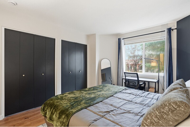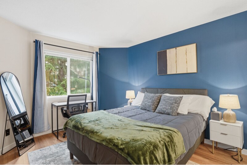 Property Id: 2220492 Modern 2-bed, 2.5-bath townhouse in SE Portland with garage, private patio, and open living space. Each bedroom has its own en-suite bathroom, perfect for professionals or small families. Quiet residential area near Mt. Tabor, shops, and MAX light rail. Fully furnished with Wi-Fi, washer/dryer, and workspace. Ideal for medium-term stays, relocations, or work travel.