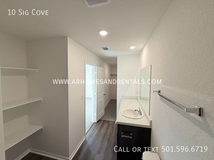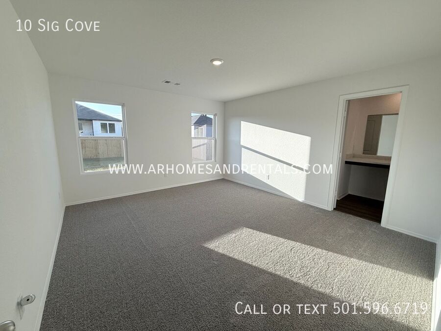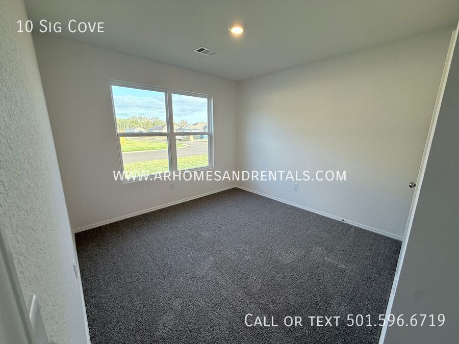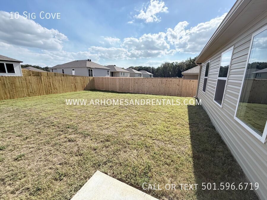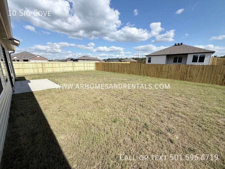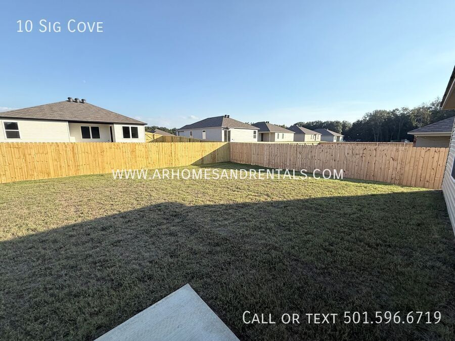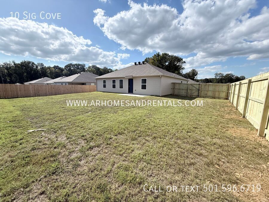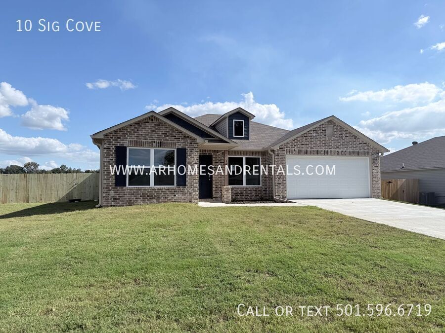 10 Sig Cove, Ward, AR. 72176 Don't miss out on the opportunity to make 10 Sig Cove, Ward, AR. 72176 your new home. Contact us at: today for more information on leasing options or apply now at our direct website: - Brand New Construction - Single-family home - Master bath - Modern Kitchen - Electric stove - Stainless steel appliances (Stainless Fridge will be installed before move-in) - Microwave - Central heat and air - Large, fenced-in backyard - Porch - 2 Car Garage - Laundry unit hookups - Electric water heater - Washer and dryer connection Central Heat And Air Driveway/Garage Electric Stove Electric Water Heater Porch/Patio Single Family Home Spacious Front Yard/Fenced In Backyard Updated Kitchen & Bathrooms Washer And Dryer Connection
