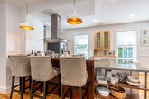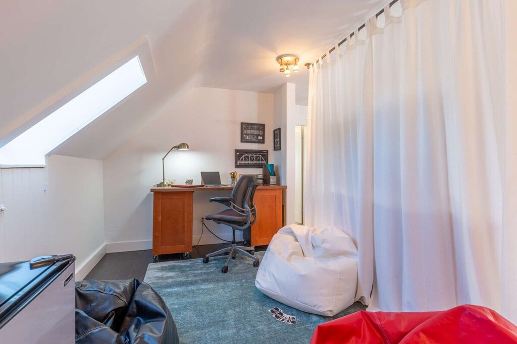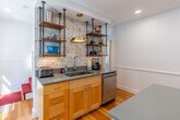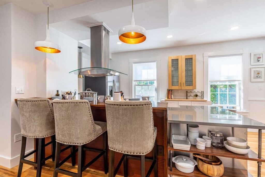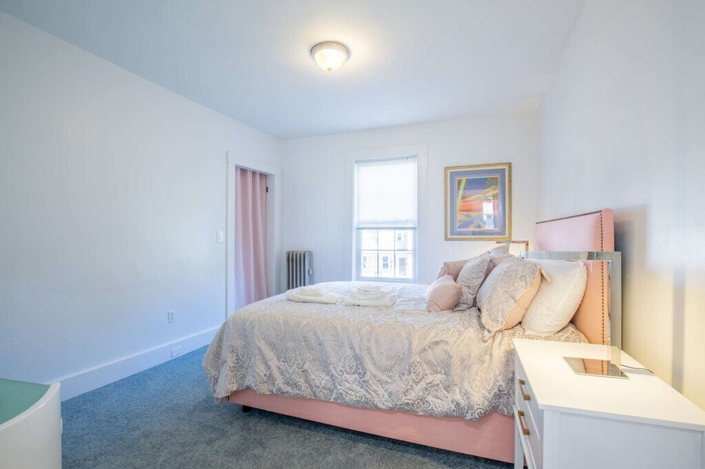 Welcome to Broom & Board, a beautifully updated home in the heart of Salem. Enter through the antique front door and be greeted by a vestibule that cherishes history while celebrating modern conveniences. Climb the stairway to your private entrance on the 2nd floor with keyless entry, leading into a seating and dining area with a big screen smart TV. The 2nd floor features 2 of the 4 bedrooms, 1 of the 2 full baths, and laundry facilities. Ascend to the 3rd floor to find a great living room with 2 seating areas, another big screen smart TV, a kitchenette/wet bar, and a private workspace with a desk. The 3rd floor also houses 2 more bedrooms and the other full bathroom. The chef will love the stainless steel appliances, french-door fridge, 5-burner gas range, and bar seating overlooking the cooking center. The kitchen is a joy to cook in, with custom design elements like hand burnished walnut shelves and sleek lighting. The home features beautifully redone hardwood floors throughout, a fully equipped kitchen with full-size appliances, a coffee maker, and a blender. Enjoy the living and dining room with a big screen TV, and the convenience of a washer and dryer. Off-street parking is available for 2 cars in tandem. For family-friendly accommodations, a luxury Pack-n-Play or other children's furnishings are available for an additional charge, subject to availability. Broom & Board is located on a quiet side street, yet mere moments from the hubbub of Salem. Many attractions and the center of Haunted Happenings are just a couple of blocks away. A neighborhood beach is just 5 minutes away, and Salem Willows, with its city pier, dining options, and entertainment, is a short walk from the home. Salem is a historic coastal city, rich in New England history and culture, with numerous attractions like the House of the Seven Gables, Salem State University, and the Peabody Essex Museum. Smoking is strictly prohibited, and guests will be fined and immediately evicted if there is any evidence of smoking found anywhere in this home. No pets are allowed. Quiet hours are between 10PM and 8AM on weekdays and 11PM and 8AM on weekends. No parties or events are allowed at any time, and violations are grounds for eviction with no refund. Window air conditioning units are installed in May and removed in September. Includes a private workspace with a desk, high-speed internet services, and window air conditioning units with both cooling and fan functions. A laptop computer is not included. Enjoy special pricing for a group psychic reading or seance during your stay. [SI]