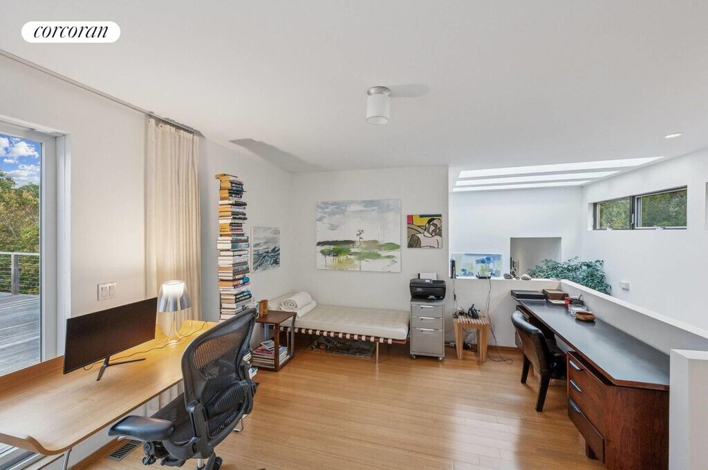 REDUCED PRICING. GREAT WINTER RENTAL...2 MONTH MINIMUM...Imagine relaxing by the fire this winter in this stunning, ultra-contemporary home, beautifully furnished with European contemporary furniture. The home rests on a lushly landscaped acre just a stone's throw from the village, bay, and ocean beaches. 3 levels with 3 bedrooms, 3 full baths, 2 powder rooms, office space, den, an open Italian kitchen with a separate pantry including a separate sink and convection oven, 2 fireplaces (one gas and wood burning), baby grand piano, 4 huge decks overlooking fabulous grounds and pool area set up with covered daybeds. A personal oasis poised for entertaining - all of it included in this contemporary masterpiece. [[Rental Registration # 25-1113]]
