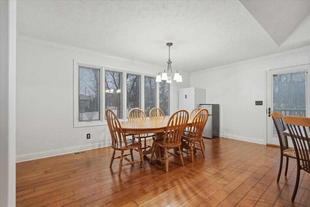 Charming Ranch Home in The Timbers Subdivision. Welcome to this beautifully maintained,pet friendly,single-family ranch home nestled on a quiet cul-de-sac in the desirable Timbers Subdivision. Offering 3 bedrooms,3 bathrooms,and an impressive 3,888 square feet of living space,this home is designed for comfort,convenience,and effortless entertaining. Step inside to a warm and inviting main floor featuring hardwood floors,cathedral ceilings,arched doorways,and elegant crown molding. An electric fireplace adds to the cozy atmosphere,while the main floor laundry brings everyday ease. The spacious kitchen and dining areas flow naturally into the living room,creating an ideal layout for family gatherings. French doors open to a second living area on the lower level,providing flexibility for a rec room,home theater,or guest space. The full,3/4finished basement includes a large utility room with abundant storage,offering practicality to match the home's charm. Additional upgrades include energy-efficient casement windows,geothermal heating,and a whole house vacuum system-modern comforts that enhance the home's value and efficiency. Outside,the 3car garage provides ample space for vehicles,tools,and hobbies. Warm,welcoming,and perfectly suited for family living and entertaining,this home is ready to be loved for years to come. MLS# MRD12578289 Based on information submitted to the MLS GRID as of [see last changed date above]. All data is obtained from various sources and may not have been verified by broker or MLS GRID. Supplied Open House Information is subject to change without notice. All information should be independently reviewed and verified for accuracy. Properties may or may not be listed by the office/agent presenting the information. Some IDX listings have been excluded from this website. Prices displayed on all Sold listings are the Last Known Listing Price and may not be the actual selling price.