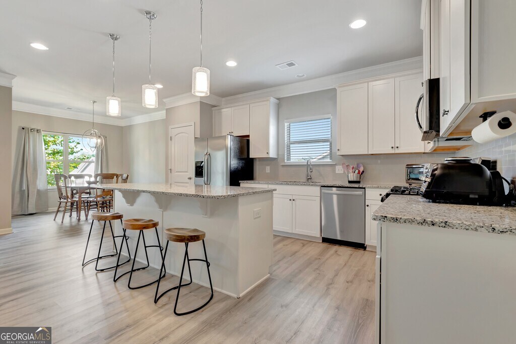 Like-new 4BR/3BA ranch in a prime central location! Built in 2020 as a former model home, this spacious open-concept floorplan features a split-bedroom layout-ideal for roommates or flexible living. The modern kitchen offers a large island, granite countertops, updated appliances (including washer/dryer), and durable laminate flooring throughout the main living areas. The private primary suite includes a walk-in closet with direct laundry access and a spa-style bath. A separate upstairs bedroom/bonus room with its own full bath is perfect for guests, an office, or media room. Enjoy an oversized covered patio, high ceilings, fresh paint, and move-in-ready condition. HOA community with public water/sewer. All major systems approx. 5 years old. Great layout, newer home, excellent location-this one is worth the rent.