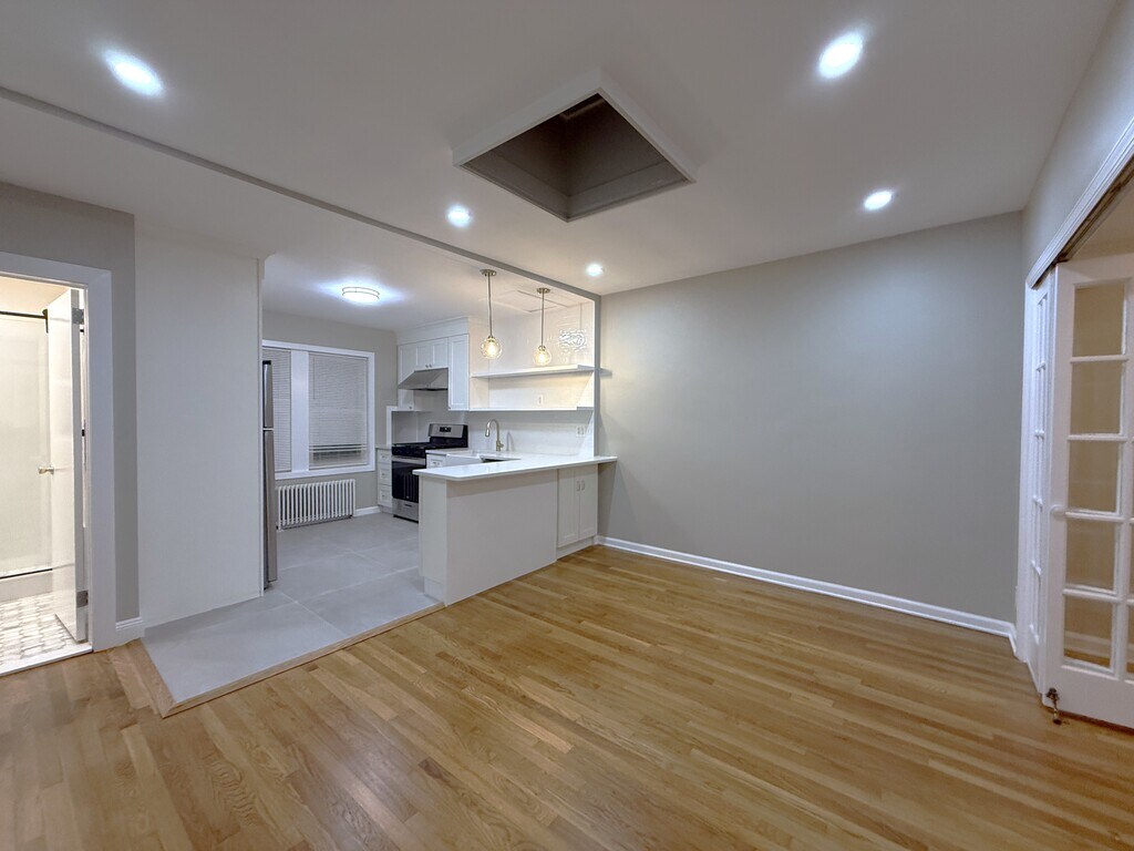 Beautifully renovated, sun-filled third-floor apartment with a treetop view. This unit features one bedroom, a full bathroom, and a versatile bonus room perfect for a home office. Enjoy a spacious open kitchen connected to the living area, complete with brand-new appliances and an in-unit washer and dryer. Ideally located near Austin Street’s restaurants, bars, and shops, and express trains and the LIRR at 71st/Continental Avenue. Move in ASAP.