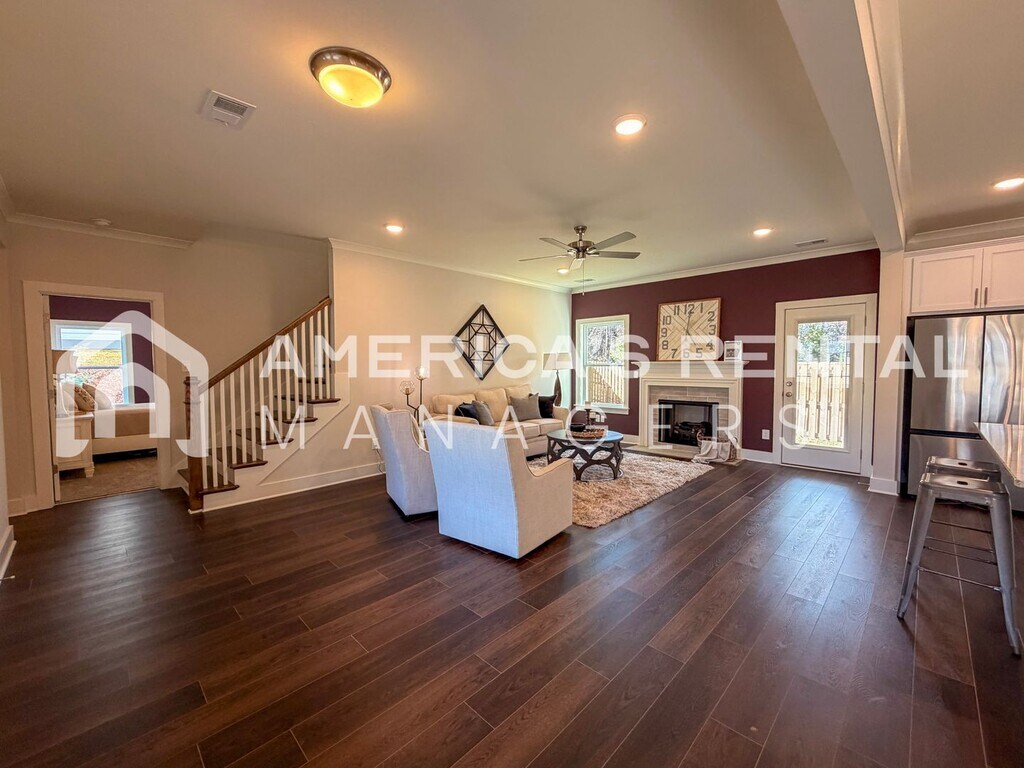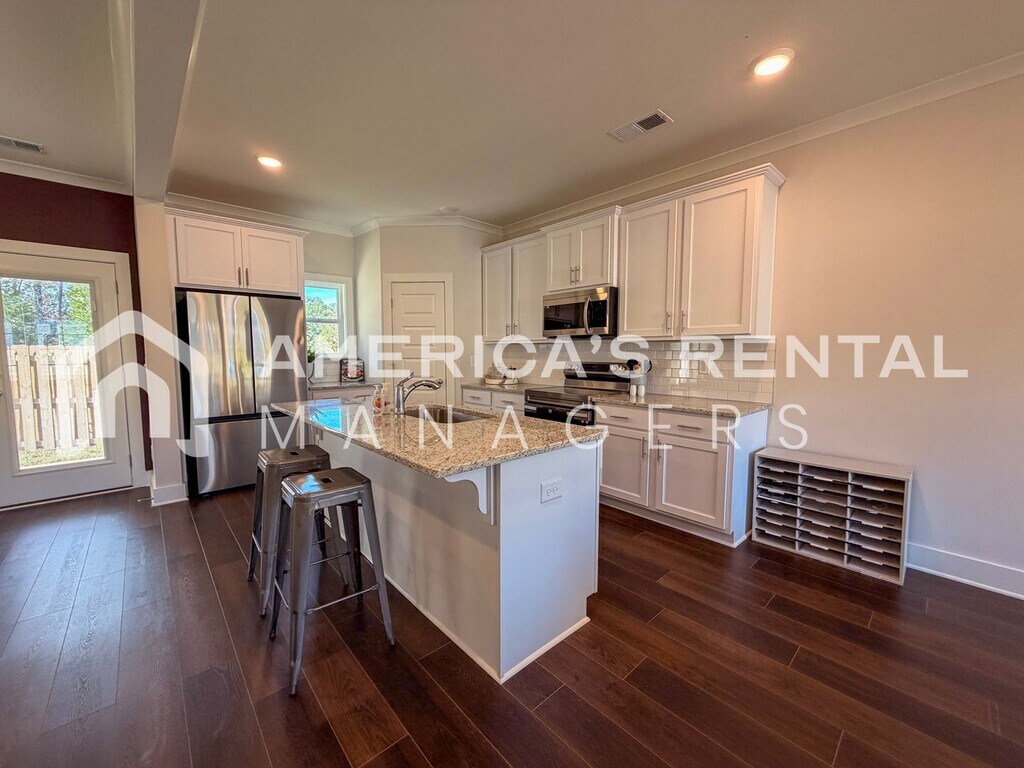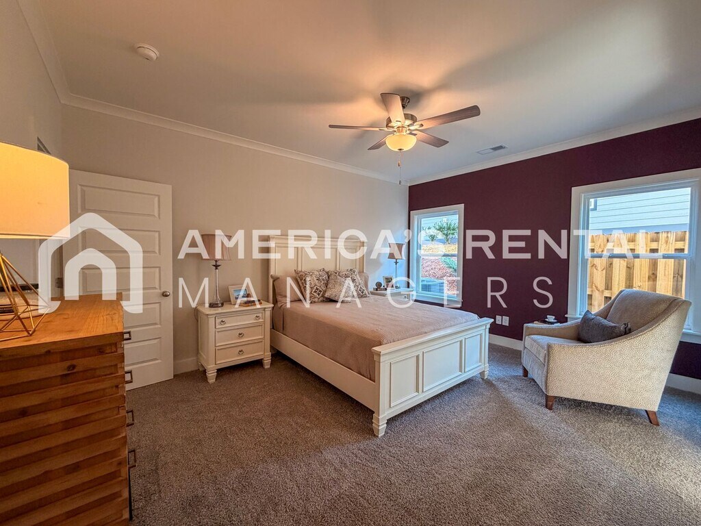 This spacious 4-bedroom, 3.5-bathroom home in the Melrose Landing community offers a modern open-concept layout situated on a corner lot. The main level features a flowing great room that connects seamlessly to the dining area and kitchen, which opens onto a covered back patio for easy outdoor access. The primary suite is conveniently tucked away on the first floor for privacy, boasting a substantial walk-in closet. Upstairs, a large loft area anchors the second floor, leading to additional bedrooms that feature a Jack-and-Jill bathroom arrangement and a separate guest suite. Complete with a rare three-car garage and a landscaped yard with an irrigation system, this home combines generous living space with practical amenities. *The home is currently staged. *Tenant to provide refrigerator. **This home doesn't qualify for Section 8. Lease: 13 months. Advertised rate reflects base rent only. Application Process: $60 per adult (19+), due within 24 hours of deposit payment. Screening includes credit, criminal & eviction background, housing history, and employment/income verification. Holding Deposit: $500 temporarily reserves the property during application review. Refundable if application denied. Refundable if prospect cancels within 24 hours; forfeited thereafter. Credited toward security deposit at move-in. Applicants must take possession within 10 days of deposit placement or availability date. Processing Fee: $249 due at lease signing. Resident Benefits Package (RBP): $59.95/month includes renter’s insurance, positive credit reporting, ID theft protection, HVAC filter delivery, on-demand pest control, and resident rewards program. Utilities: Landlord bills monthly for water/sewer/gas/trash + $10 monthly admin fee. Resident sets up electricity only. Pet Policy: Pets allowed, with breed restrictions (max 2 without special approval). One time $500 non-refundable fee + monthly pet rent ($25/mo 0-40 lbs; $50/mo 40+ lbs; $50 for 3+ pets with approval). $200 refundable deposit for pets under 1 year. ESA/Service animals require additional documentation. School Zone: Residents verify independently. Contact: America’s Rental Managers – call or visit for FAQs and application info.
