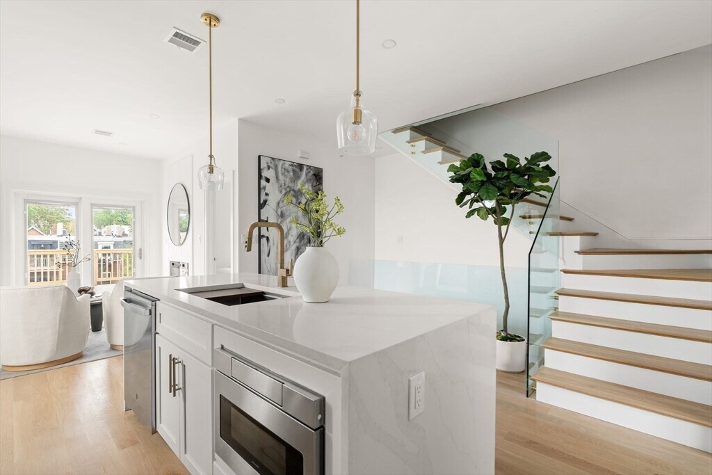 Discover a stunning 2-bedroom,2-bath home that brings modern style and effortless East Boston living together in one incredible space. Soaring ceilings,natural light,and sleek white oak floors create an open,airy feel from the moment you walk in. The contemporary kitchen features quartz countertops and custom cabinetry,flowing seamlessly into a spacious living area with a striking fireplace—perfect for relaxing or hosting friends.Enjoy not one,but two private outdoor spaces: a large deck right off the living area and a private roof deck with panoramic views of East Boston and the Boston skyline. The tranquil primary suite includes a beautifully designed en-suite bath and generous closet space,offering the comfort and privacy you’re looking for.You’ll be just minutes from the Blue Line,scenic waterfront parks,and some of the neighborhood’s best restaurants. This home offers a truly special living experience—one you’ll love coming back to every day. MLS# 73456661