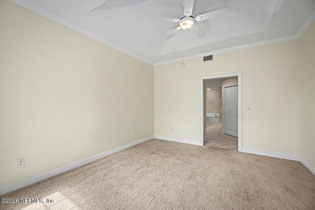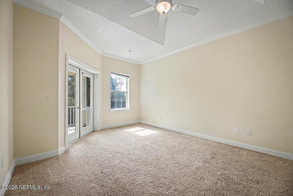Experience the pinnacle of coastal elegance in this stunning,move-in-ready Ponte Vedra Beach sanctuary. Recently refreshed with a crisp,modern paint palette,this residence welcomes you with sophisticated architectural details including soaring trey ceilings and classic crown molding. The heart of the home is a meticulously remodeled chef's kitchen,boasting sleek granite countertops,42'' custom cabinetry with an integrated wine rack,and a premium stainless steel appliance suite featuring a convection oven and a dedicated warming drawer for effortless entertaining. Beyond the interior luxury--which includes a designer guest bath with a contemporary vessel sink--the home offers a seamless transition to outdoor living on an expansive private balcony. Situated within a secure gated community,this home provides the rare peace of mind afforded by solid concrete construction and the convenience of a private two-car garage. MLS# 2135445