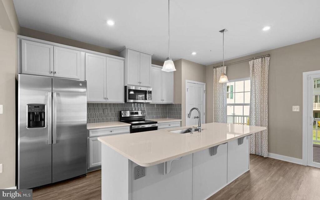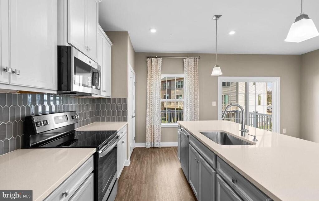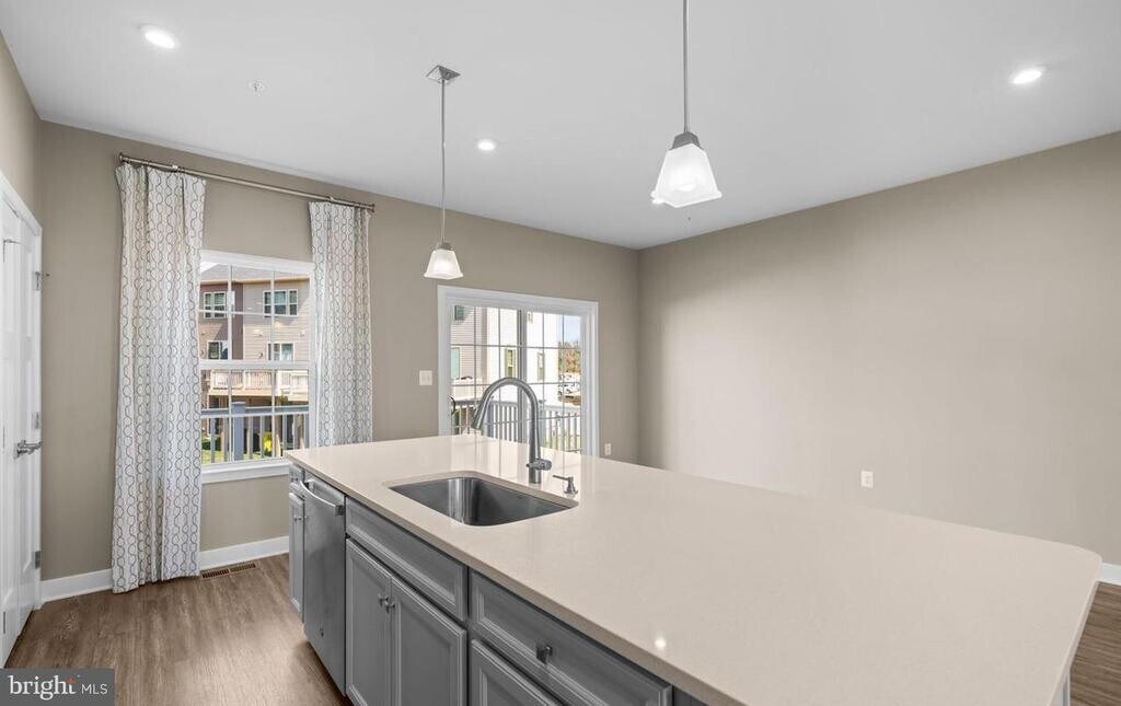 Built in 2022, this end of group group townhome offers the space and comfort of a single family home, complete with a one car garage. The ground level foyer welcomes you into a versatile recreation room, with stairs leading to the open concept main level. Here you’ll find a spacious living room, a central gourmet kitchen, and a dining area highlighted by a large island. The upper level features two additional bedrooms and a full bath, along with a private owner’s suite showcasing two walk in closets and a dual vanity bathroom.