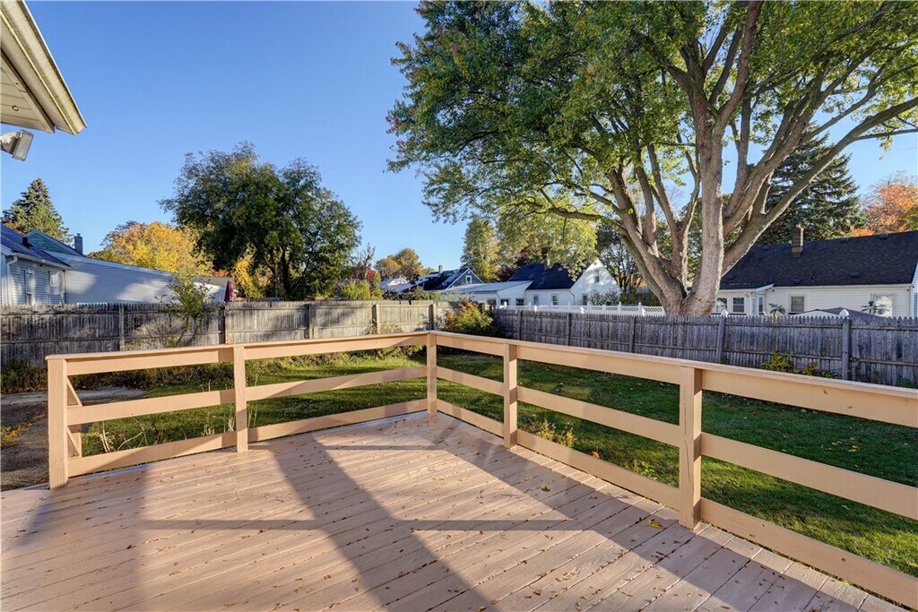 At least one person on the lease must have a 600 or better credit score. One year lease minimum -will do longer. One month's rent security deposit. No pets. Very nice street on the border of Irondequoit. Very large first floor primary bedroom plus 2 bedrooms up. Hardwood floors,eat-in kitchen,central air,enclosed porch and deck over looks a privacy fenced backyard. All appliances. A lot of replacement windows will keep heat bills down. Covered patio,large basement,Available now.