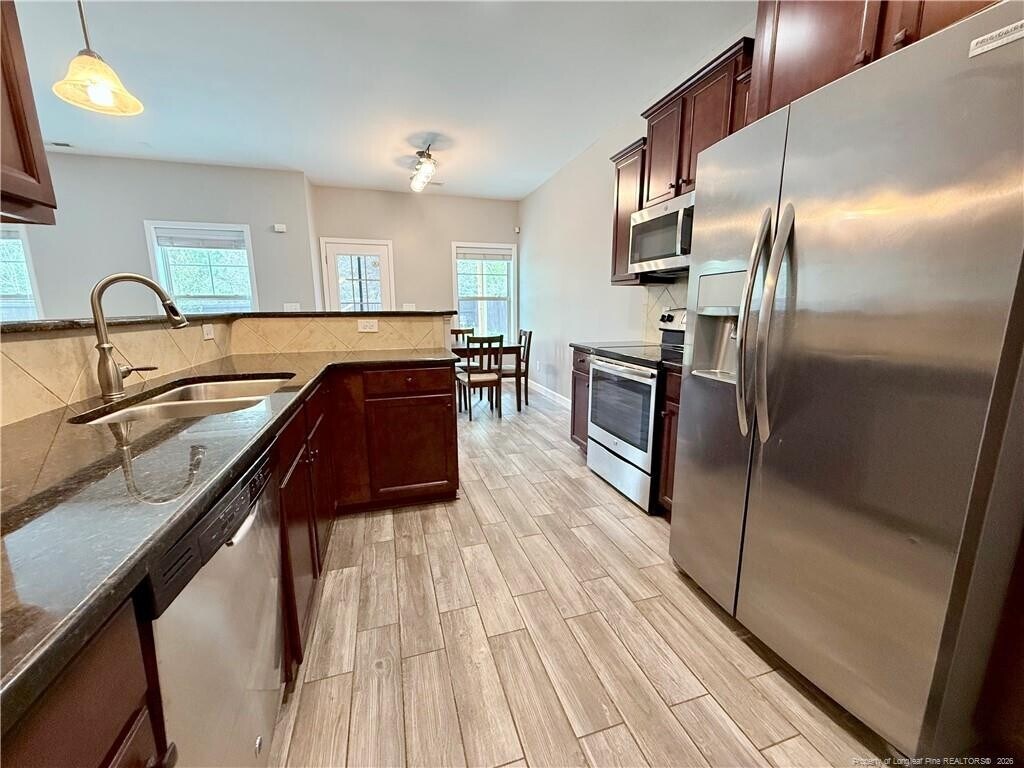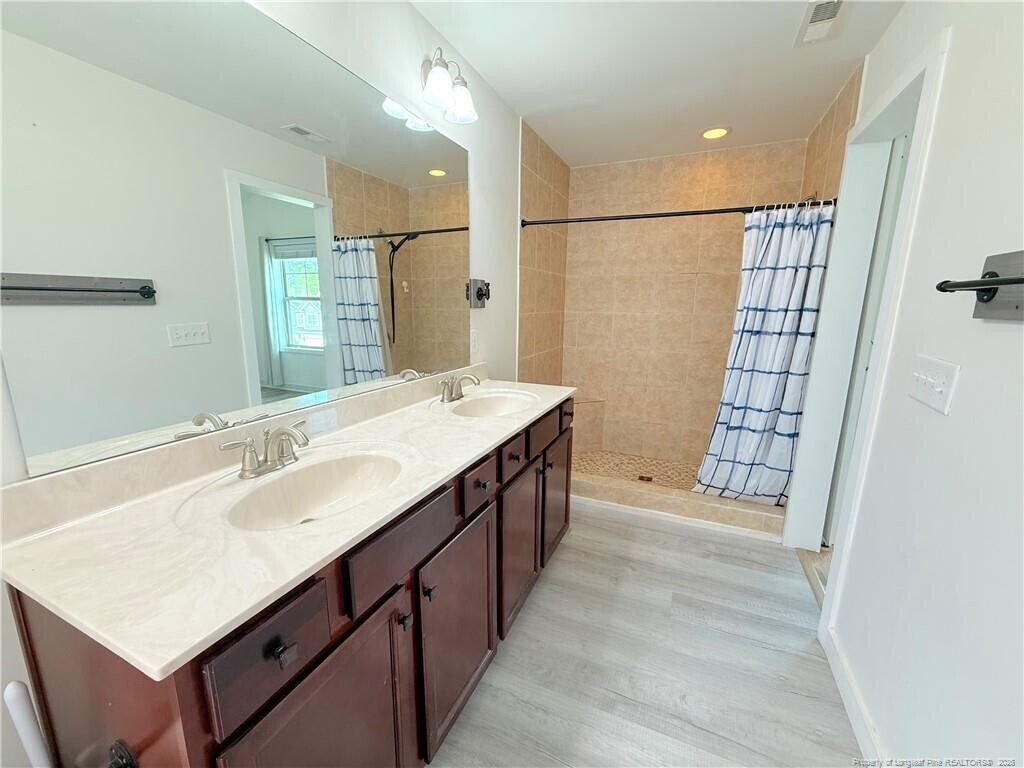 Available 5/15 – This beautifully maintained 3-bedroom, 2.5-bath home with a versatile loft/flex space offers both comfort and style. The first floor features an open floor plan that effortlessly connects the living room to the kitchen, complete with a cozy fireplace, granite countertops with a breakfast bar, and stainless steel appliances. A convenient laundry room and powder room complete the main level. Upstairs, all three bedrooms are complemented by a generous loft area perfect for a home office, media space, or additional lounge. The primary suite is exceptionally spacious, and the ensuite features a large tiled shower alongside a separate garden tub for ultimate relaxation. Step outside to enjoy the covered patio, extending to a cozy sitting area with a built-in fire pit, all within a fully fenced backyard ideal for outdoor entertaining. The home is in a great location with easy commutes to Fort Bragg, Sanford, or Fayetteville. Community amenities include a swimming pool, clubhouse, and playground, offering plenty of options for recreation and relaxation. Pets Upon Approval.