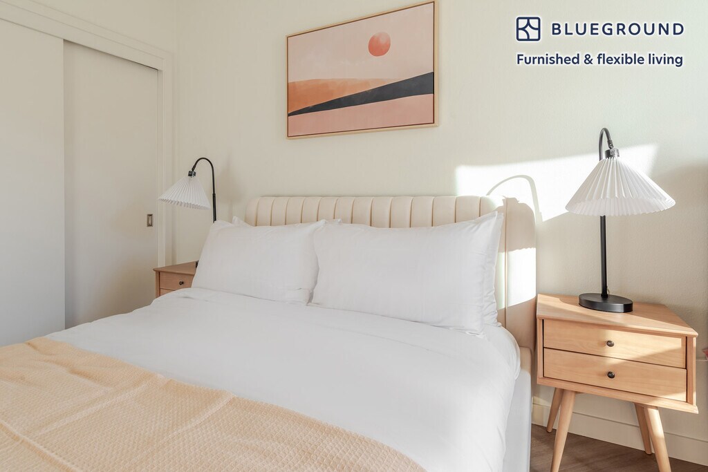 Feel at home wherever you choose to live with Blueground. You’ll love this charming Old San Leandro furnished one bedroom apartment with its modern decor, fully equipped kitchen, and exquisite living room. Ideally located, you’re close to all the best that San Leandro has to offer! (ID #SFO1942) The advertised rate of $2,730/month is the lowest available price, based on a 11 month(s) and 29 day(s) stay with a move-in date of April 7, 2026. Rates vary depending on the duration of stay, season, and other parameters. For exact pricing and additional pricing components, please visit our website and enter your desired move-in and move-out dates. The rate is applicable when billed upfront; it can be higher if billed in multiple payments. Brokers are welcome to reach out. Were you looking for an unfurnished lease? Try Blueground instead and upgrade from unfurnished to furnished living: - Furnished at rates comparable to unfurnished - No setup or furniture costs - save thousands - Move-in ready - save time, just bring your suitcase Designed with you in mind Gorgeous furniture, fully equipped kitchen, smart TV, and a premium wireless speaker are just a few of the amenities you’ll find inside this one bedroom apartment. Ideally located in San Leandro, you’ll find a lot to love outside as well. When you’re ready to relax, you’ll be happy to discover every Blueground bedroom comes with superior quality mattresses, fully stocked linens, and cozy towels. We handle everything so you can simply show up and start living. This apartment also offers in-apartment laundry. Sleeping arrangements Queen Bed, 63in/160cm Amenities Building amenities unique to this one bedroom apartment include an on-site: - BBQ Area - Dryer - Elevator - Washing machine - Parking - Pets allowed Arrival and ongoing support The entire apartment is yours to enjoy! Throughout your stay, you’ll have access to our Client Experience team through the Blueground App. You can schedule additional cleanings, submit maintenance requests, and view our neighborhood recommendations with just a few taps. We’ll share all details upon confirmation of your stay. Other things to note Building amenities may have an extra cost. This Blueground apartment has flexible lease options, allowing you to book it for one month, a year, or more. Pets are welcome, though weight limits and breed restrictions apply and may incur fees. Parking is offered based on availability and is subject to a fee. We take great pride in ensuring every photo displayed is shot in our own units with our actual furnishings. That said, we regularly refresh our decor and furniture arrangement, which may differ from what’s pictured. [SI]