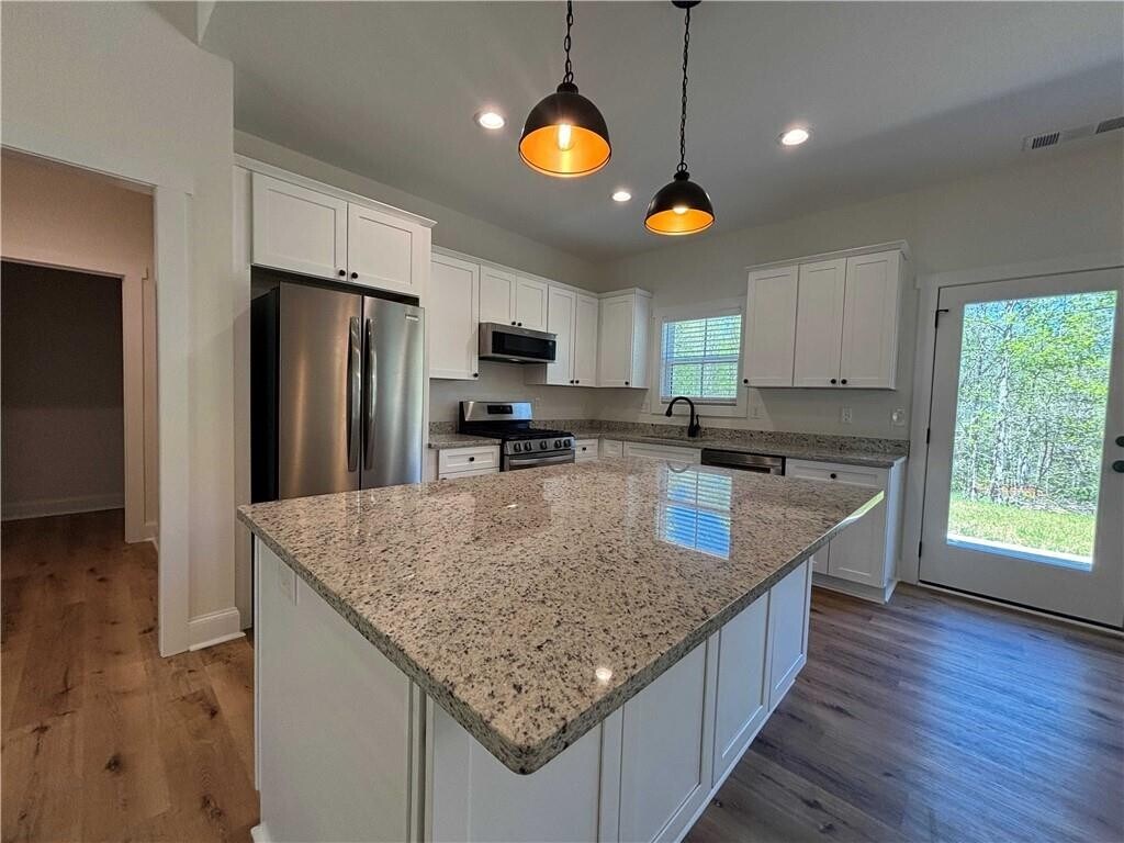 New in 2024! This 3 bed 2 bath step less ranch is almost finished and should be ready to rent right away. This upgraded home features granite counters and of course all new stainless appliances in an open floor plan with a private view of a wooded grove behind the house. The main bedroom is spacious with his and hers closets,a bath with double vanities and custom tile shower. Plenty of room in the 2 car garage with concrete drive and parking pad. Builder put in lots of can lights,vaulted Great room and large windows for a bright and open feeling throughout the house. Located on a full acre just minutes from Lumpkin County High School,Camp Merrill and historic Dahlonega. Please call Billy at to get more details and schedule a showing. No pets. 1 year lease with $2500 security deposit and $2500 a month rent plus utilities. MLS ID 7735586