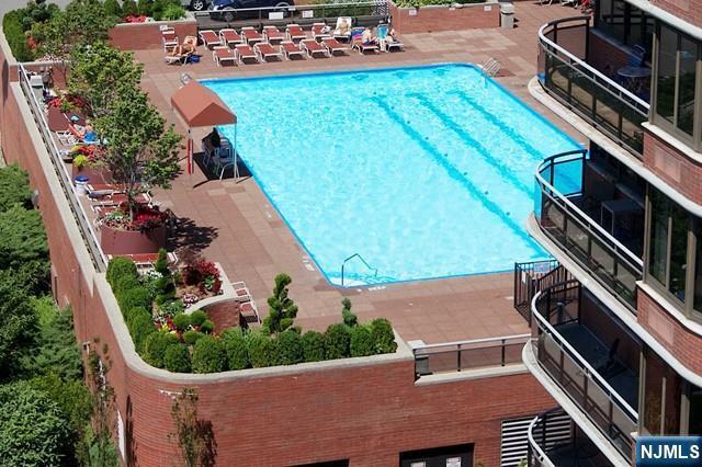 Well maintained 1 BR condo with unobstructed NYC & River views. Great panoramic south exposure (light & bright) from this beautiful luxury condo at Carlyle Towers. Large terrace with access from the BR & living room. Laundry in unit. Carlyle Towers is a full service luxury condo with 24 hour concierge & doorman, full time valet, outdoor pool, exercise room, community room & library / card room. Easy access to NYC via NJ Transit or NY Waterways ferry system.