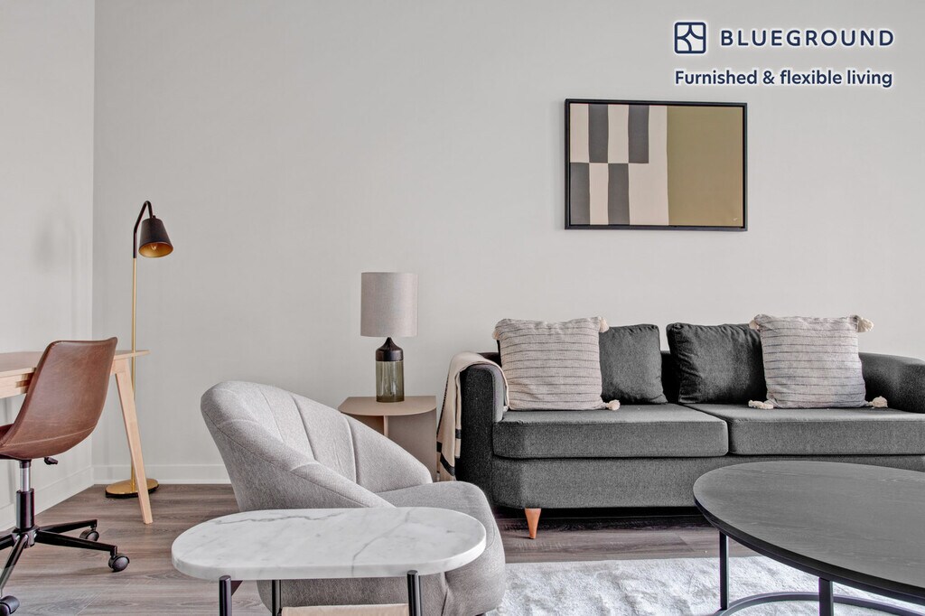 Feel at home wherever you choose to live with Blueground. You’ll love this stylish Bethesda furnished one bedroom apartment with its modern decor, fully equipped kitchen, and beautiful living room. Ideally located, you’re close to all the best that Bethesda has to offer! (ID #WDC421) The advertised rate of $2,090/month is the lowest available price, based on a 1 month(s) and 20 day(s) stay with a move-in date of November 27, 2025. If you’re looking for a 1-year stay, the rate is $2,760/month. Rates vary depending on the duration of stay, season, and other parameters. For exact pricing and additional pricing components, please visit our website and enter your desired move-in and move-out dates. The rate is applicable when billed upfront; it can be higher if billed in multiple payments. Brokers are welcome to reach out. Were you looking for an unfurnished lease? Try Blueground instead and upgrade from unfurnished to furnished living: - Furnished at rates comparable to unfurnished - No setup or furniture costs - save thousands - Move-in ready - save time, just bring your suitcase Designed with you in mind As with any Blueground apartment, you’ll find a thoughtfully designed space complete with beautiful furniture and a fully equipped kitchen in this one bedroom property. And, thanks to our superior quality mattresses, luxury linens, and towels, you can relax knowing you’ll always feel comfortably at home. When you’re ready for some fun, you can take in the Bethesda vibes or bring the entertainment to you with the premium wireless speaker or smart TV. This apartment also offers in-apartment laundry. Sleeping arrangements King Bed, 70.8in/180cm Amenities Building amenities unique to this one bedroom apartment include an on-site: - Doorman - Dryer - Elevator - Washing machine - Lounge - Parking - Pets allowed - Rooftop BBQ Arrival and ongoing support The entire apartment is yours to enjoy! Throughout your stay, you’ll have access to our Client Experience team through the Blueground App. You can schedule additional cleanings, submit maintenance requests, and view our neighborhood recommendations with just a few taps. We’ll share all details upon confirmation of your stay. Ideally Located This furnished home is located in Bethesda in southern Montgomery County, Maryland, northwest of Washington DC. Bethesda is one of the best-educated places in the US, and the National Institutes of Health, Walter Reed National Military Medical Center, and the Uniformed Services University of the Health Sciences are all located here. Thanks to its diverse population the area is brimming with restaurants serving up cuisine from all over the world. Bethesda has a variety of grocery stores and hosts two weekly farmers' markets. There's also Bethesda’s Arts and Entertainment District, home to many art galleries as well as public art. If you're commuting in to work, it's easy to get to Washington DC from Bethesda on the Metro's Red Line. Other things to note Building amenities may have an extra cost. This Blueground apartment has flexible lease options, allowing you to book it for one month, a year, or more. Pets are welcome, though weight limits and breed restrictions apply and may incur fees. Parking is offered based on availability and is subject to a fee. We take great pride in ensuring every photo displayed is shot in our own units with our actual furnishings. That said, we regularly refresh our decor and furniture arrangement, which may differ from what’s pictured.