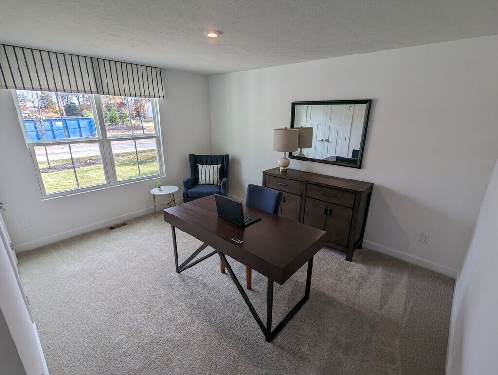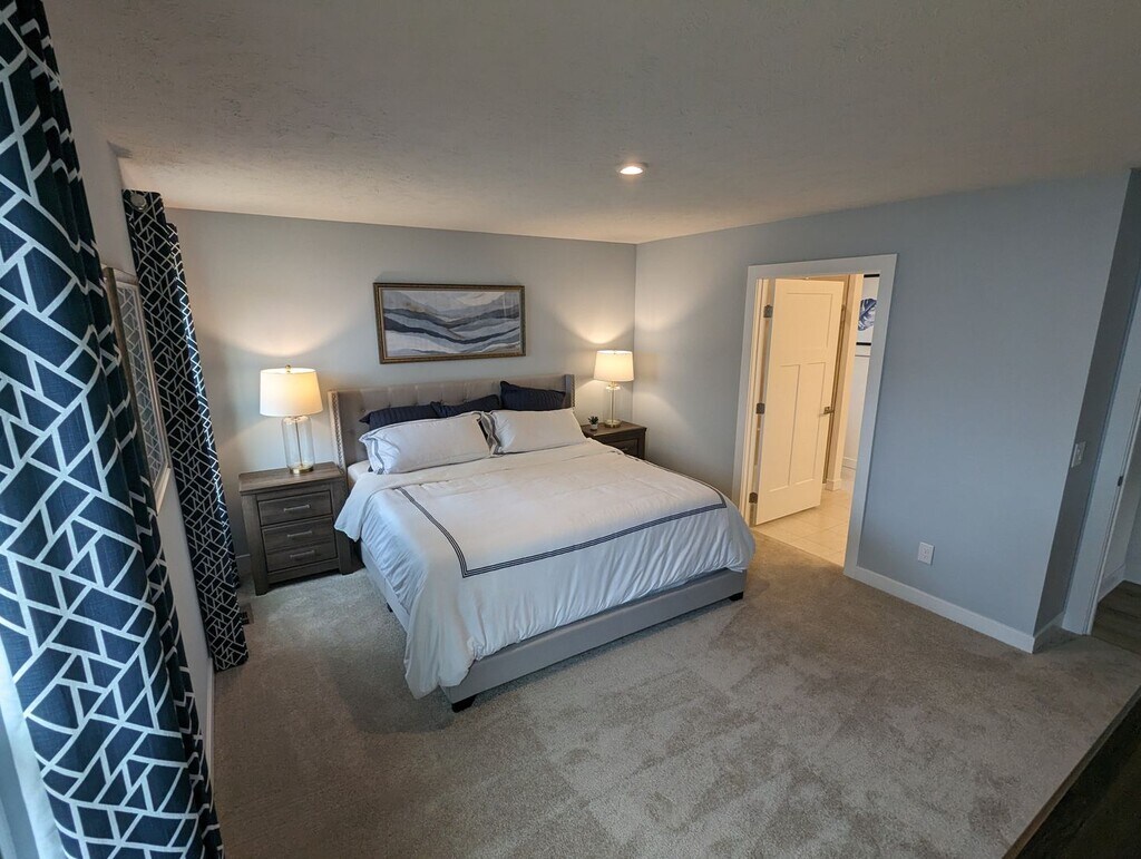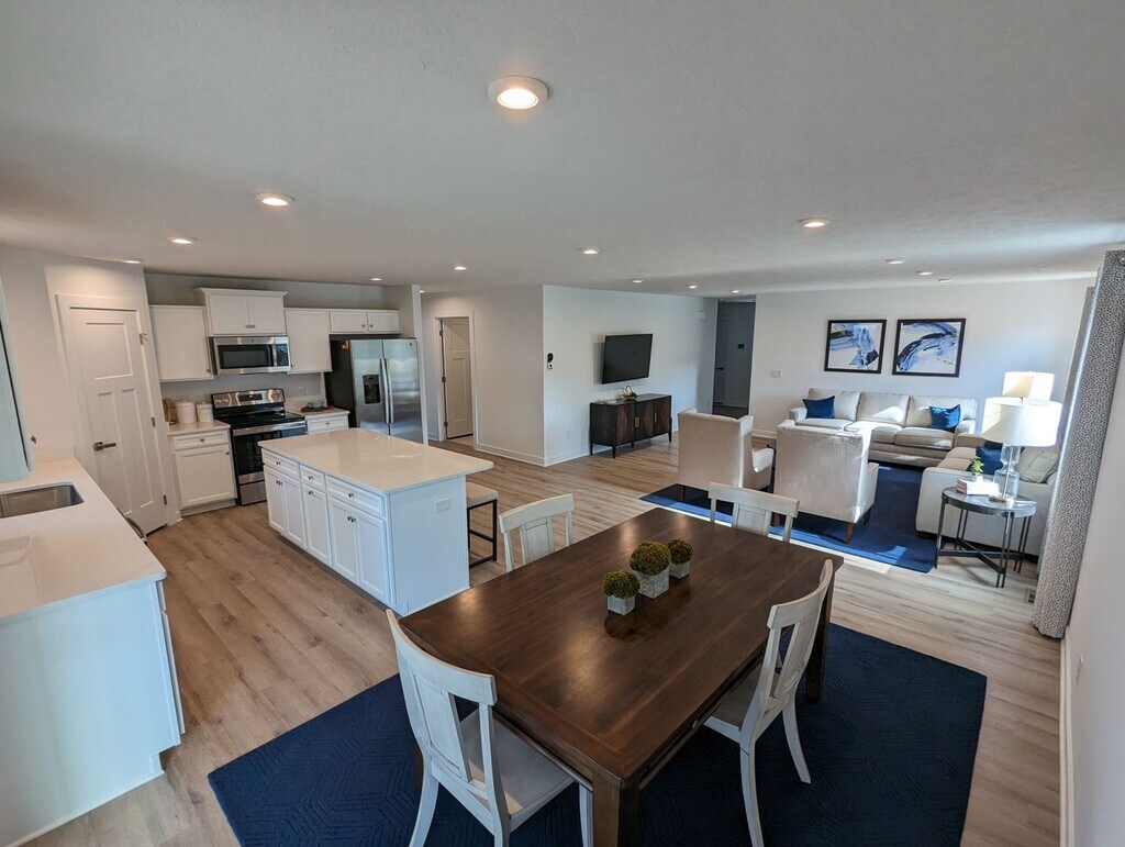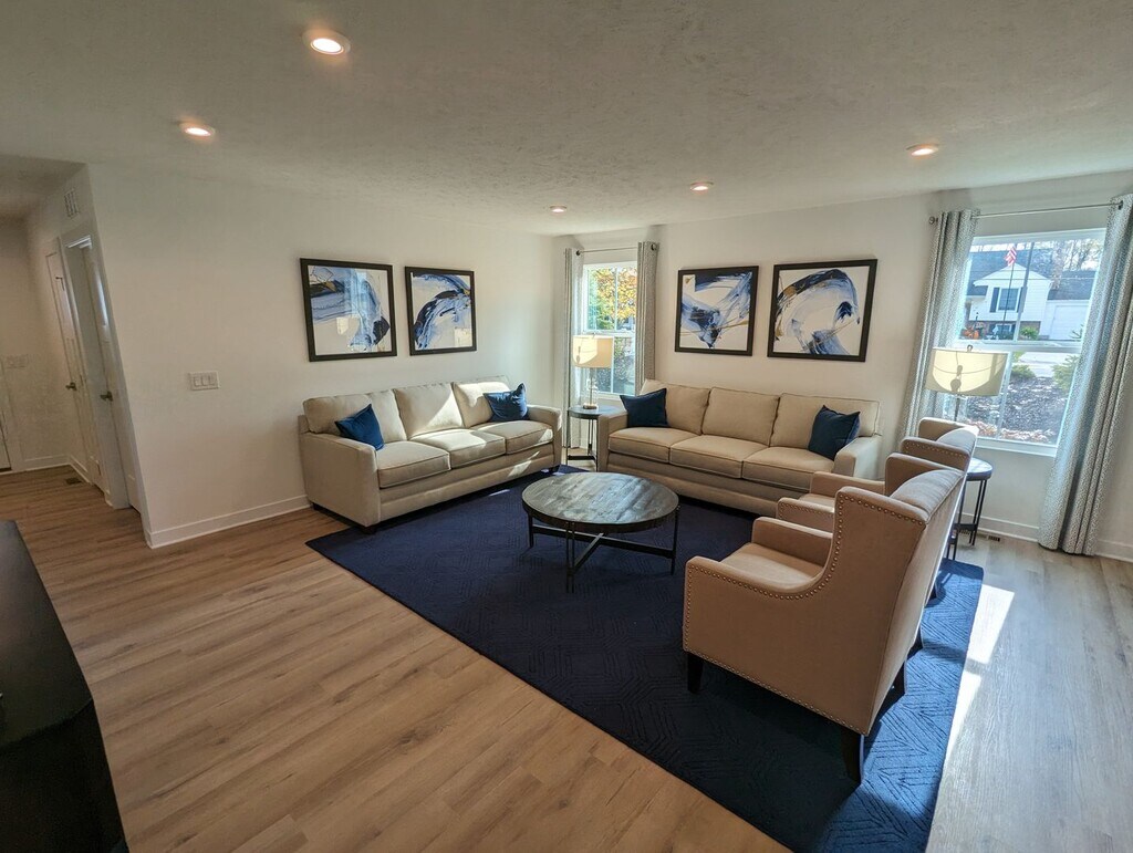 Discover the epitome of contemporary living in this pristine, brand-new home in the highly sought-after Eagle Ridge community of Amherst, Ohio. Located in the acclaimed Amherst School District, this impressive property, once the builder's model home, is fully furnished and promises modern luxury with convenient living. This spacious 3-bedroom home offers an open and thoughtfully designed layout spanning 1,720 square feet. As you step inside, you'll be greeted by luxury vinyl plank flooring that sets a contemporary tone. The open living room, dining area, and kitchen provide a seamless flow for everyday living. The kitchen boasts elegant quartz countertops, an expansive island, a convenient corner pantry, and upgraded stainless steel appliances, making it a hub for both culinary enthusiasts and those who love to entertain. Convenience abounds with a dedicated first-floor laundry room, equipped with brand-new washer and dryer units. The primary suite is a haven of comfort, featuring his and her sinks, a tiled shower with a bench, and a generously sized walk-in closet. The home offers two additional well-appointed bedrooms, each with its own closet. An extra full bathroom with a bathtub complements the home's functionality. Vehicle and storage needs are met with a spacious two-car attached garage. Step out to the rear covered deck, which includes comfortable patio furniture, providing an ideal space to unwind and enjoy the outdoors. The homeowner's association (HOA) takes care of yard maintenance and snow removal, allowing you to embrace a truly maintenance-free lifestyle. Situated in the coveted Eagle Ridge community, you'll enjoy the convenience of the nearby Deerfield Shopping Center. Charming downtown Amherst, known for its unique shops and delightful eateries, is just a short drive away. This newly constructed home is immaculate and ready for you to make it your own. Discover the perfect blend of contemporary luxury and convenience in Amherst, Ohio. Apply now or schedule your in-person showing on Landlord Leasing's website to explore this exceptional property!