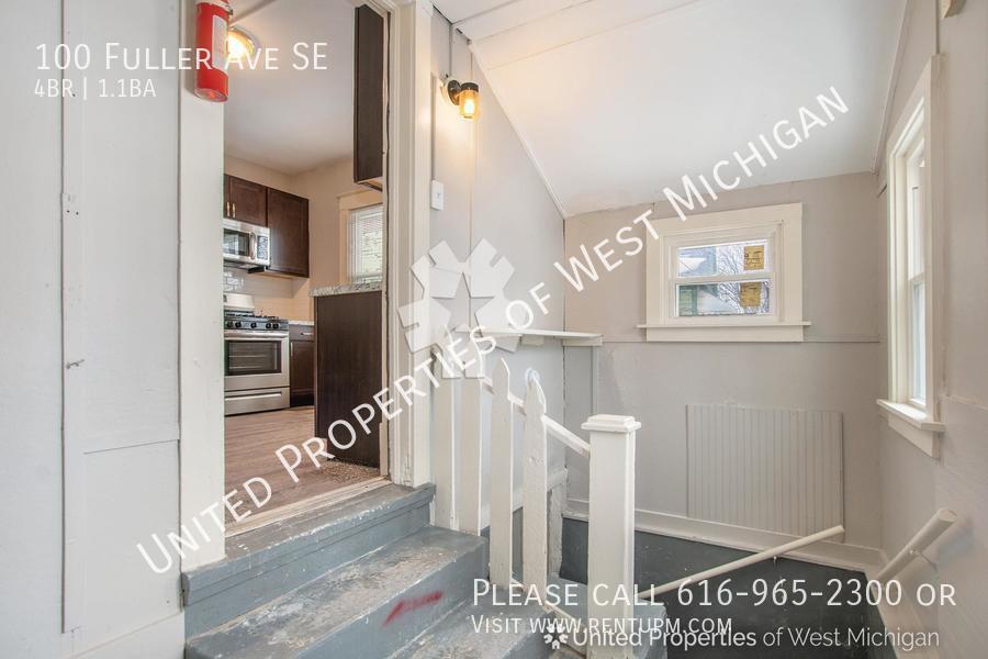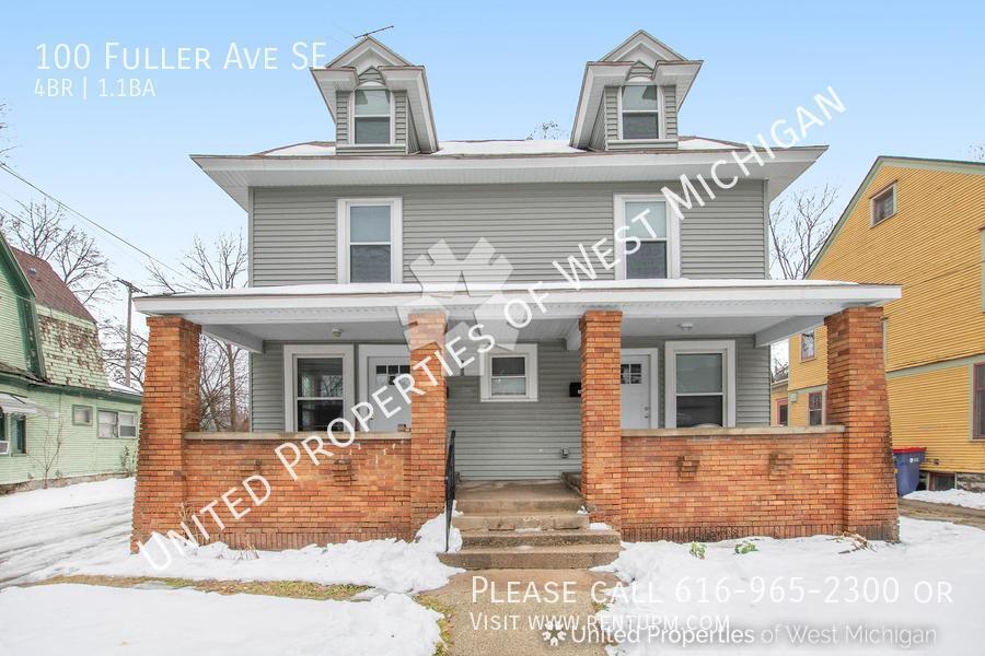Kitchen: 12’6” x 11’1”; Dining: 12’6” x 13’0”; Living Room: 12’6” x 14’1”; Stairs/Hall: 21’2” x 2’11” and 20’7” x 3’6”; Bed #1: 12’7” x 12’4”; Bed #2: 11’8” x 8’10”; Bed #3: 12’2” x 8’10”; Bed #4: 19’5” x 10’11” (stairs 17’1” x 3’); Bath #1: 6’8” x 2’11”; Bath #2: 8’9” x 4’10”; Basement: 34’ x 13’7”. This property is available 4/15/2026. Welcome to 100 Fuller! This inviting 4-bedroom, 1.5-bathroom apartment presents a delightful living space with the convenience of water included and sleek stainless steel appliances. Located in a prime setting, this residence not only offers a practical layout but also brings a touch of modern elegance to everyday living. Embrace the comfort and style of this Fuller gem, where functionality meets contemporary design. United Properties | | Schedule a showing: View application criteria: Submit an application: View pet policy: Once approved, you can secure your new home with a holding fee equal to one month’s rent, which reserves the property and is applied toward your security deposit. Based on a few items, the total deposit may be one month or one and a half times the rent; if higher, the remaining balance is due before move-in. United Properties of West Michigan has been helping residents find great homes since 2006 and is proud to be West Michigan’s largest property management company with a 4-star-plus Google rating. All residents enjoy the United Properties Resident Benefit Package, which includes: - Monthly credit reporting to the major credit bureaus - Rewards for on-time rent payments - Ongoing pest control protection This added value is $25/month, in addition to the listed rent. Learn more: We’re excited to help you find your next home and make your move-in experience as smooth as possible. Welcome home with United Properties of West Michigan! Early Renewal Option Lease Must End June 30th Porch Front Covered Tenant Pays Gas Water Heater Gas