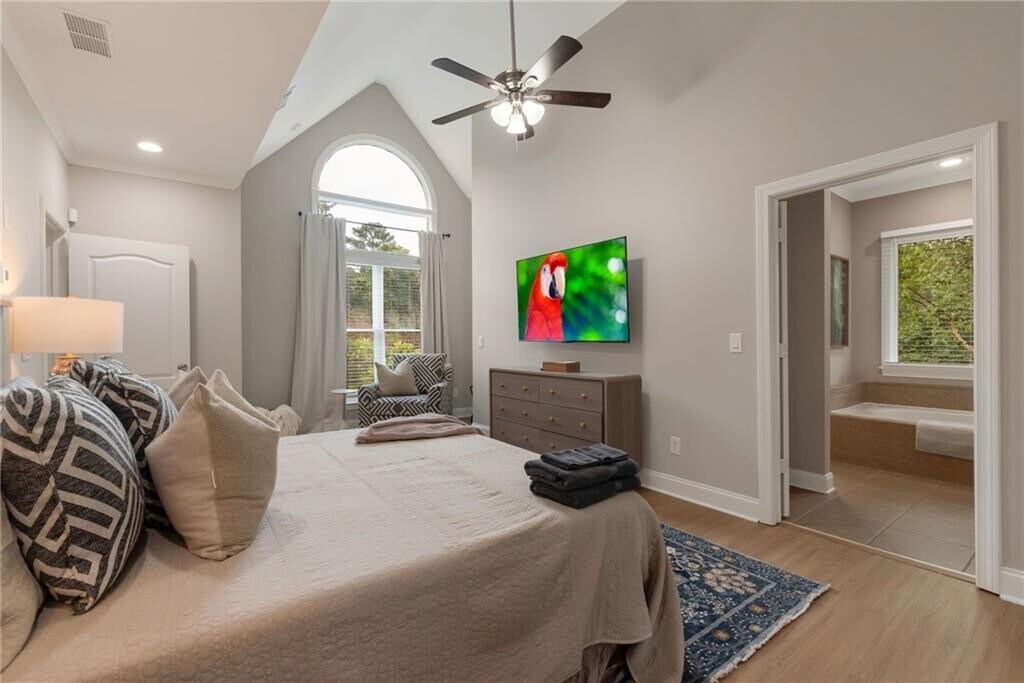 Fully Furnished. 30 night minimum. Pets welcome. This property includes all utilities,lawncare and pest services. Ideally suited for home sellers caught between properties or home owners displaced by insurance claims. This property is for short term rental (in 30 day increments for as many months as needed). Not a tenant/landlord arrangement. Security deposit $2000,cleaning fee $250 and pet fee $250. Many homes to choose from in metro Atlanta. 3 car garage. Gorgeous,custom-built home with dream kitchen on almost 2 acres. Stunning foyer. Hardwoods thru-out living areas. Large dining room leads to front porch. Beautiful kitchen has custom brick arch,huge island,custom cabinetry. Spacious family room doubles as media room with drop down screen and built-in projector. Master Suite on main w/ sitting area. Spa like bath offers his/hers closets & his/hers vanities. Huge secondary bedrooms. Private backyard w/raised garden beds,covered patio. Room for pool. Quiet neighborhood,close to 575 & shopping. No HOA,great schools!