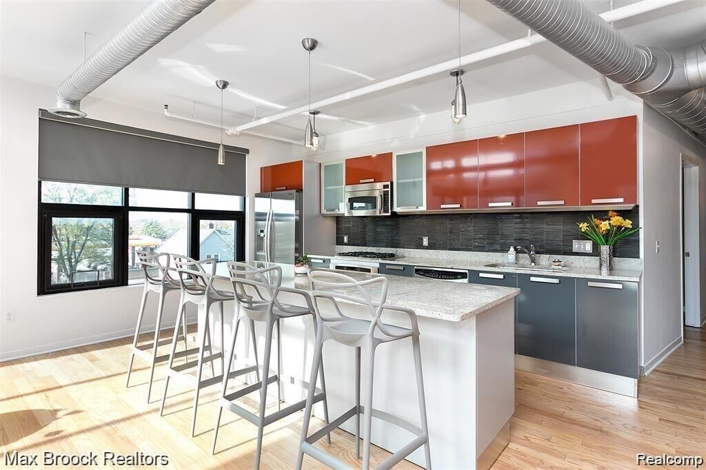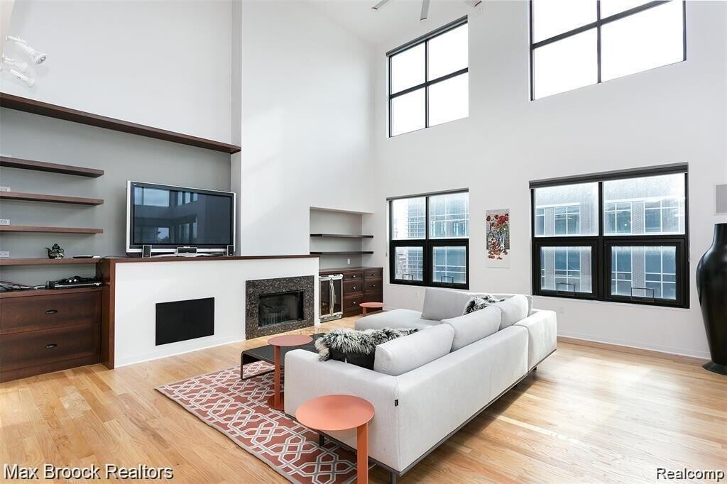 Exceptional opportunity to lease one of Royal Oak’s most impressive corner penthouse units—featuring over 2,800 sq ft of upscale living space with bright south and west exposure, captivating sunset views, and an unbeatable location just steps from premier dining, shopping, and entertainment. You can literally walk downstairs from your home and be in the heart of downtown Royal Oak, surrounded by amazing bars, cafes, and vibrant nightlife. This remarkable residence showcases soaring 20-ft ceilings, exposed beams and ductwork, expansive floor-to-ceiling windows, and rich hardwood flooring throughout. The main level highlights a designer granite kitchen, an open-concept great room with a gas fireplace, custom built-ins, wet bar with beverage fridge, and a private balcony ideal for entertaining, plus a guest bedroom, full bath, and convenient laundry room. Upstairs, the primary suite provides a spa-inspired bath, generous walk-in closet, and an open loft area perfect for an office, studio, or additional lounge space. Two assigned covered parking spaces included. BATVAI
