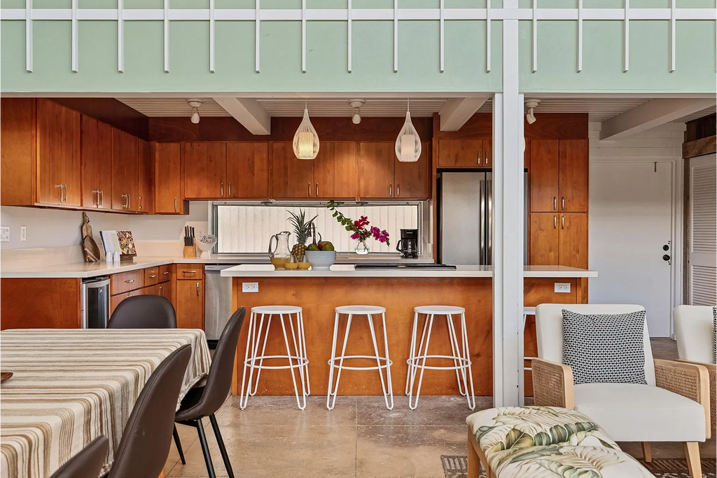 Live the dream in this fully furnished, private Kailua retreat — just one home away from world-famous Kailua Beach. This is island living at its finest. Situated at the end of a quiet lane, this exceptional property is surrounded by tropical landscaping and offers generous indoor and outdoor living and dining spaces. The ground level features a private outdoor shower and a spacious covered lanai—perfect for BBQs, entertaining, or even getting in a workout while enjoying the island breeze, rain or shine. This fully furnished, beautifully remodeled 6-bedroom, 4-bath single-family home spans approximately 3,800 square feet of interior living space. Designed for both comfort and style, the home offers two separate sitting areas and two covered outdoor lanais. Floor-to-ceiling windows and soaring vaulted ceilings create a bright, open, and airy atmosphere throughout. Entertain with ease in the expansive dining area, which comfortably seats eight, and enjoy a fully equipped chef’s kitchen featuring updated appliances and a central island ideal for gathering. Start your mornings with sunrise views from the covered lanai and a fresh cup of coffee, or unwind in the afternoon with a book in your spacious private garden. Ideally located just minutes from Kailua Town, this home offers both tranquility and convenience. Appliances include dishwasher, garbage disposal, microwave, oven, refrigerator, stove, and in-unit washer/dryer. The kitchen comes fully stocked, and each well-appointed bedroom is equipped with efficient split AC for year-round comfort. Simply unpack your suitcases and settle into your turnkey island home. This property is professionally managed by Private Homes Hawaii, LLC and is a legally established rental accommodation available for 6–12 month leases at $14,000 per month. The property owner holds a Hawaii State General Excise Tax License. Available July 15, 2026 for a 6–12 month term. Rent includes electricity (with allowance), landscaping, water, sewer, and pest control. Dogs are negotiable; no cats. No smoking and no subletting permitted. Contact Alia Chochol (RA) RS-84884 at to schedule a private showing. Showings begin April 1, 2026. Please flag discriminatory housing ads, avoid scams, and deal locally. DO NOT wire funds (e.g., Western Union) or rent sight unseen.