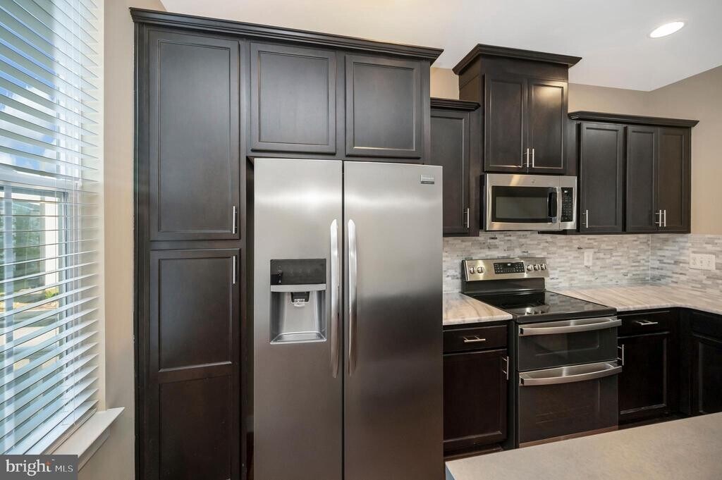 End-unit townhome featuring three bedrooms and 3.5 baths in an unbeatable location. This home is just moments from the I-95 exit and conveniently situated behind Stafford Marketplace, offering an abundance of shopping, dining, and everyday conveniences. A commuter lot located directly across from the neighborhood makes commuting effortless. This spacious home offers excellent square footage across three finished levels. The entry level includes a bedroom with a full bathroom—perfect as a guest suite, home office, or second family room—as well as access to the one-car garage. The main level boasts a huge family room, a powder room, and a gourmet kitchen designed for both style and function. The kitchen features upgraded cabinetry with ample storage, quartz countertops, a tile backsplash, and stainless steel appliances. A movable island provides additional workspace and storage. The large dining area opens to the deck, ideal for outdoor dining and entertaining. The upper level features two primary bedrooms, offering the luxury of generously sized spaces. Both bedrooms include walk-in closets and en suite bathrooms. One suite showcases double vanities, a soaking tub, and a walk-in shower. Additional highlights include LVP and hardwood flooring throughout the entire home, an end-unit location with extra windows and abundant natural light, and a garage with extra storage. The driveway accommodates two vehicles, and additional parking is a breeze with ample nearby guest parking. Residents also can enjoy the community pool and maintained lawn and landscaping by the association