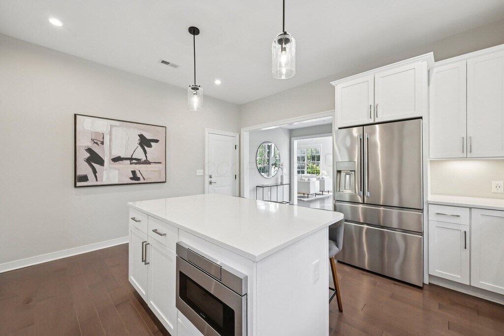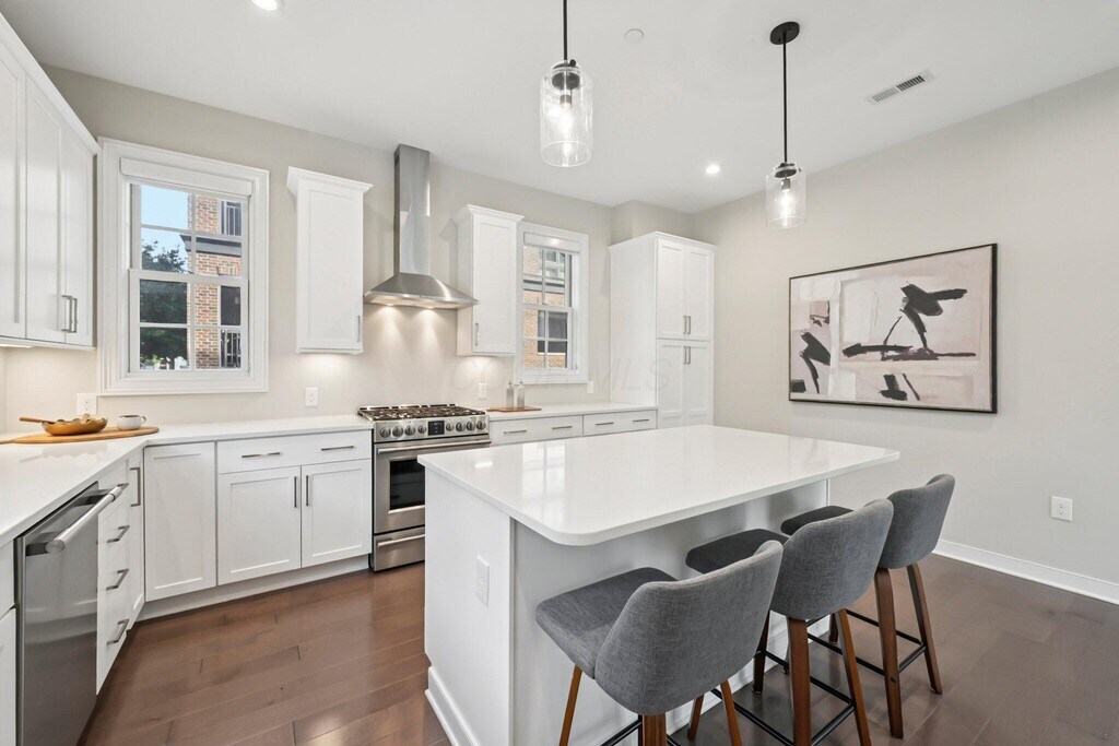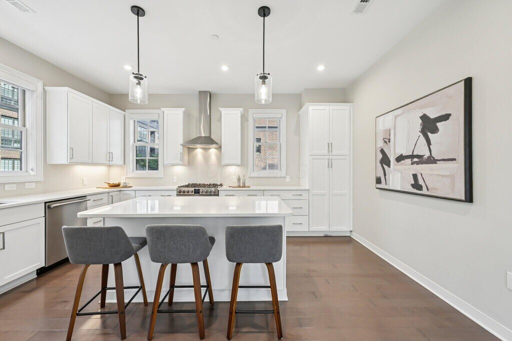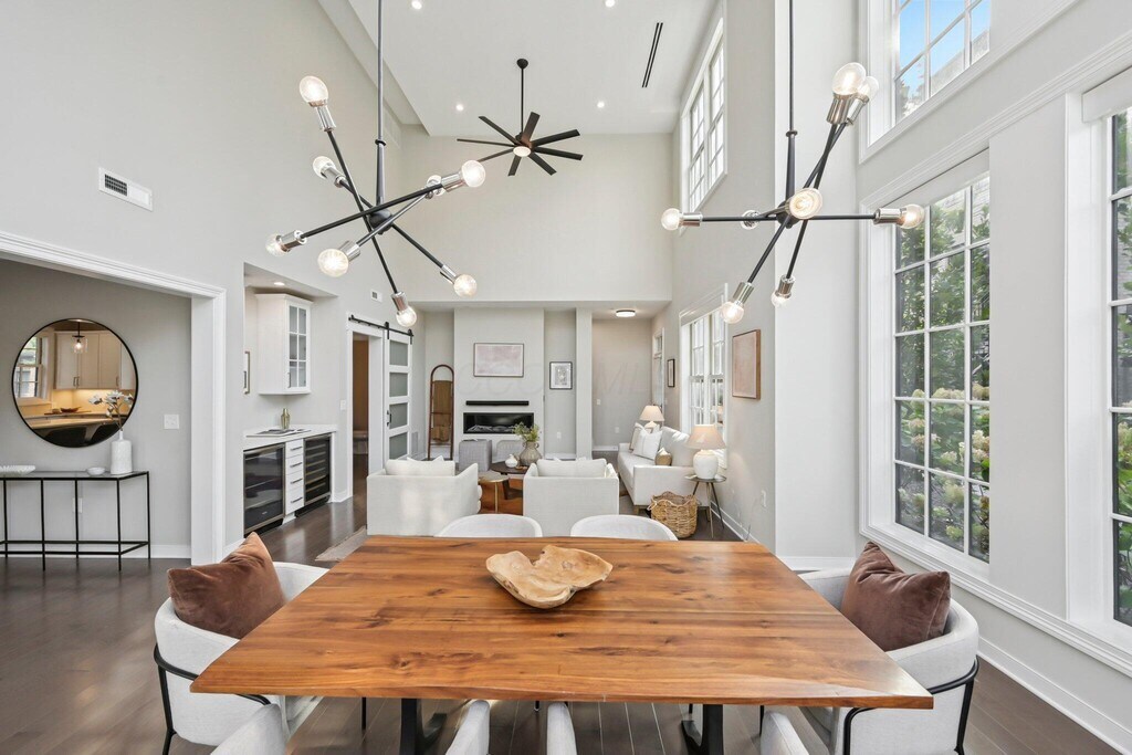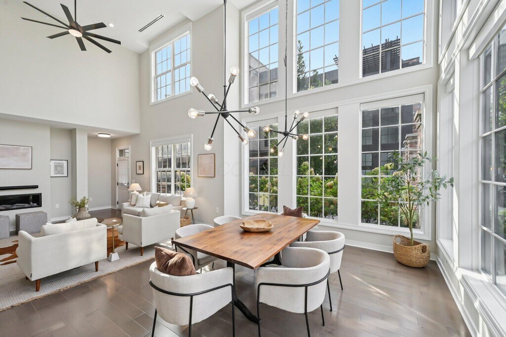 Sophisticated urban living meets modern design at 100 Normandy Avenue in the heart of downtown Columbus. This stunning 3-bedroom,2.5-bath townhome showcases timeless brick architecture paired with sleek contemporary finishes,offering the perfect blend of character and luxury. Inside,expansive windows flood the open-concept living spaces with natural light,highlighting soaring ceilings,wide-plank flooring,and clean modern lines. The chef's kitchen is designed for both style and function,featuring premium appliances,quartz countertops,and a generous island that flows seamlessly into the dining and living area,ideal for entertaining. The owner's suite offers a serene retreat with a spa-inspired bath,double vanity,and walk-in closet. The primary suite is perfectly positioned to take up the entire second floor complete with laundry,storage area as well as private balcony. Up to the third level,you will find two additional bedrooms which provide versatility for guests or a home office. A private rooftop terrace with pergola is a true highlight,delivering panoramic city views and the ultimate space for outdoor dining or evening relaxation. Enjoy secure gated entry,a two-car attached garage,and close access to the Short North,Arena District,and riverfront parks. Located in the architecturally pleasing Neighborhood Launch area,which comes with the benefit of a tax abatement. With low-maintenance living,elegant design,and an unbeatable location,this residence is a rare opportunity to enjoy the best of Columbus in style!