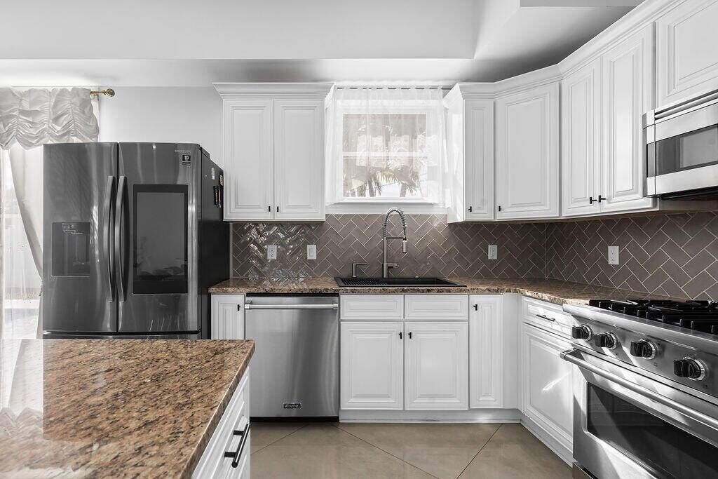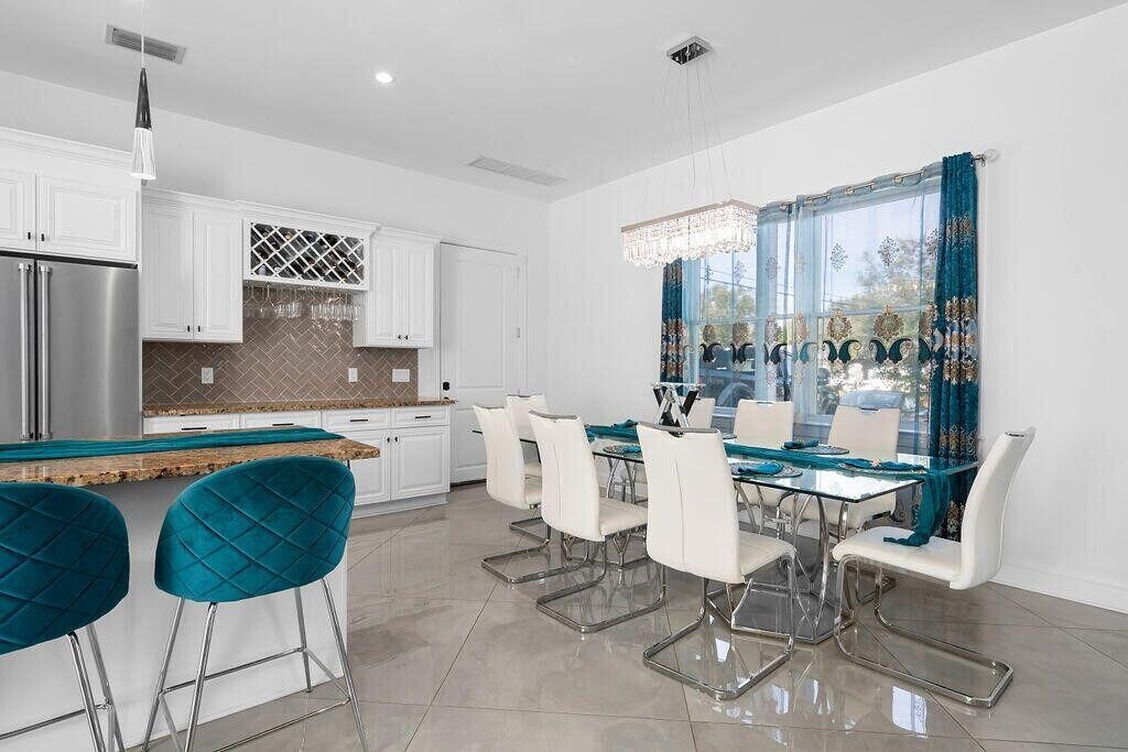 Spectacular, 2 story home is a masterpiece of design & functionality, situated on a prime corner lot. The home boasts 5 bedrooms and 4 bathrooms, 10-ft ceilings w/ new Anderson impact windows/doors. Chef's dream, Viking appliances. Porcelain tiles throughout.The grand primary suite is a private retreat, tremendous walk-in, spa-like en suite bathroom provides a luxurious escape. The backyard features a new, heated in-ground pool, captivating infinity-edge jacuzzi, and cabana bath. Generator hookup, a tankless water heater, and propane hookups for both the gas range and an outdoor grill. .Minutes to gourmet restaurants , golf and beaches.