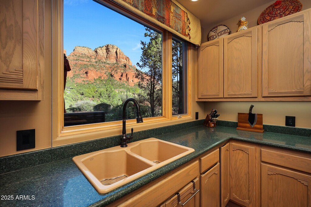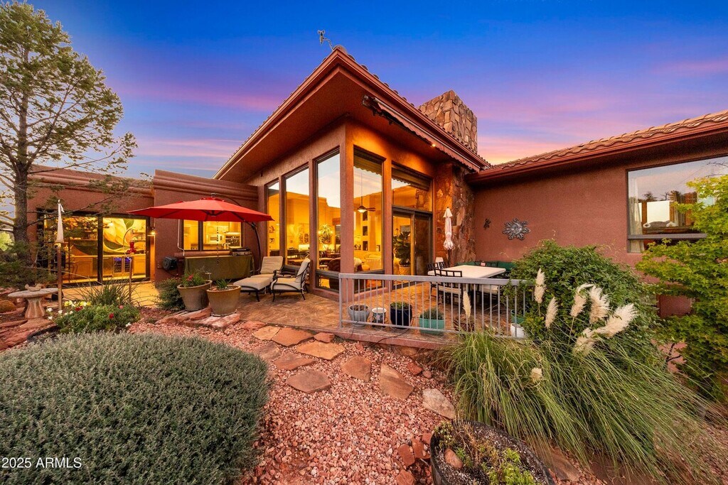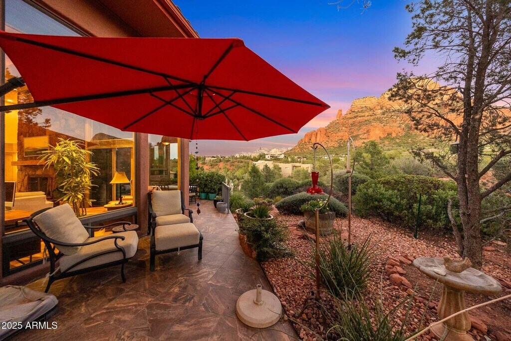 THIS SEDONA SANCTUARY is nestled just 10 minutes from Sedona's downtown and offers the perfect balance of seclusion and convenience. World-class hiking and biking trails are steps away, while your exclusive community clubhouse elevates your lifestyle with a resort-style pool, tennis and pickleball courts, a fitness center, cozy library, card room and a grand fireplace for neighborhood gatherings. Unparalleled panoramic views of Sedona's iconic red rocks - Elephant Rock and Cathedral Rock glowing in the sunrise to the east while Jerome's rugged peaks frame vibrant sunsets to the west. This architectural treasure, bathed in natural light through floor-to-ceiling Pella windows, transforms everyday moments into unforgettable experiences. Savor morning coffee on your east-facing patio as the sun rises over Elephant Rock, or unwind on the elevated herb garden patio, where western sunsets paint the sky in hues of orange, pink and twilight blue with wildlife grazing nearby. Designed for living and entertaining, it features a chef's kitchen, dining and living area - perfect for hosting lively gatherings or intimate family moments. Freshly renovated, the kitchen boasts solid rain-forest acacia and teak wood bars, sleek granite countertops, a sprawling island and a show-stopping 9-foot coffee bar with a sink, dual-zone wine fridge and RO water system. Create culinary masterpieces with a 6-burner gas stove, griddle, pot filler, double ovens and Sub-Zero fridge. The great room invites relaxation with a soaring 25-foot rock chimney and roaring fireplace, surrounded by elevated seating for cozy evenings under soft cove ceiling lights. Whole-home wired audio sets the perfect ambiance, while thoughtful details like display alcoves and a stunning foyer chandelier add sophistication and warmth. Four spacious bedrooms offer serene escapes, each framing Sedona's breathtaking vistas. The fourth bedroom doubles as a luxurious guest suite, complete with its own living area, full bath and private patio opening to lush gardens - ideal for guests. Schedule your private tour today. 6-month minimum lease $7500 per month includes all utilities, landscaping service and one mandatory monthly cleaning service. Security Deposit - $7500 Non-refundable cleaning deposit - $500 Refundable cleaning deposit $1000. Pets accepted with owner approval and agreed upon pet deposit $100 one-time placement fee