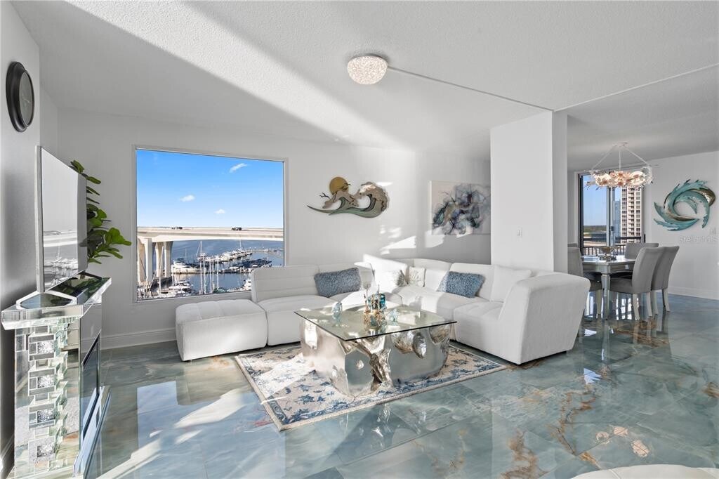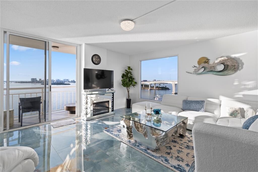 A rare corner unit with unobstructed,wraparound water views from every single room. Perched high above the Intracoastal and marina,this stunning fully furnished residence offers panoramic blue-water vistas in every direction. Floor-to-ceiling windows and two private balconies showcase wide-open water views with no obstructions—the kind of views you simply don’t find often. Watch boats glide by,enjoy golden sunsets,and yes,dolphins are frequently visible right from the balconies. This corner unit has been fully renovated with high-end materials throughout,blending modern elegance with coastal sophistication. The open layout is light-filled and serene,designed to keep the water as the focal point from every space in the home. The condo is offered fully furnished and utilities are included—water,trash,and electricity—making this an effortless,turnkey lease. Residents enjoy resort-style amenities including a waterfront pool and the beautifully appointed Monte Carlo Room,perfect for entertaining or hosting private gatherings. An exceptional opportunity to lease a move-in-ready waterfront residence with some of the best views Clearwater has to offer. MLS# TB8456390