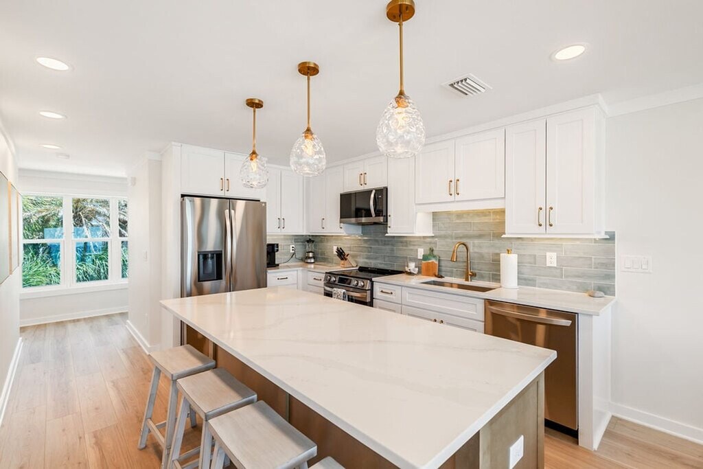 The advertised rate of $8,503/month is the lowest available price, based on a 30 day(s) stay with a move-in date of October 23, 2026. Rates vary depending on the duration of stay, season, and other parameters. For exact pricing and additional pricing components, please visit our website and enter your desired move-in and move-out dates. The rate is applicable when billed upfront; it can be higher if billed in multiple payments. Experience beachfront luxury in this beautifully remodeled, three-story townhome, also known as Spooky Palms, offering accommodations for up to 10 guests. Feel at home in this 4-bedroom, 4-bathroom retreat in the exclusive, gated community of Sea Haunts, directly on the sugar-white sands of 30A. This spacious retreat features a fully remodeled and fully equipped kitchen, a private balcony overlooking the Gulf, lush landscaped grounds, and a large community pool. Enjoy private deeded beach access. Ideally situated just steps from Gulf Place, you'll be within walking distance of coffee shops, boutiques, restaurants, and entertainment. Take a short bike ride or drive to explore iconic 30A towns like Seaside, WaterColor, Alys Beach, and Rosemary Beach. Bike along the scenic Timpoochee Trail or hike through nearby state parks like Grayton Beach, Deer Lake, and Topsail Hill Preserve. Discover boutiques at Alys and Rosemary Beach, outlet deals at Silver Sands, or upscale shops at Grand Boulevard. Pets are not allowed. [SI]