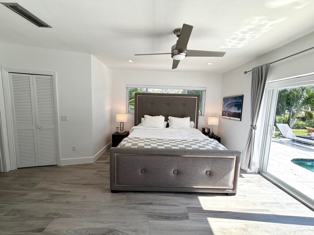 Welcome to this fully renovated, stunning Lakefront, home in coveted Palmetto Park Terrace- a private waterfront oasis, perfectly positioned on a quiet cul-de-sac lot in one of East Boca Raton's most desirable neighborhoods. This 4 Bedroom, 3-Bath single-family pool home offers open-concept living, with sweeping lake views from nearly every room. Step inside to a kitchen that flows seamlessly into the living, dining & family rooms, featuring modern white cabinetry, quartz countertops, & stainless-steel appliances. Entertain effortlessly with a Sonos outdoor sound system and expansive glass doors that open to the pool deck and serene lakefront