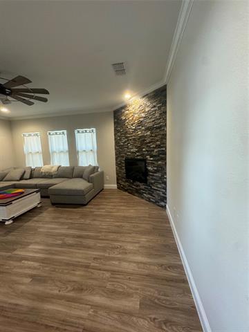 Nearly new home! Partially furnished (if desired) and well-kept home in coveted Lake Kiowa neighborhood. Enjoy all the privileges of ownership - free unlimited golfing, lake access, restaurant and 19th hole, beaches, playgrounds, and more! Large fenced back yard, luxury vinyl plank flooring, quartz countertops, and open floor plan. Yard maintenance and internet are included in rent.