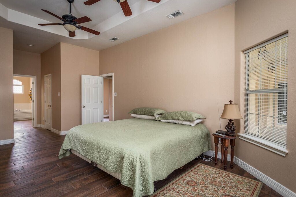 Beautiful Ceniza Hills property, comfortably situated on its pretty treed corner lot! You will love this custom built, immaculate, 4 bedroom, 3 bathroom home that has everything. Double doors lead you into the formal living room with soaring ceilings, ceramic tile and French doors to the back patio. Elegant formal dining room with plenty of room for your formal table and buffet. Wonderfully spacious family room with interior double doors for privacy and media enjoyment. Open kitchen and breakfast area complete with gas cook top and pantry. Primary suite is one of a kind with its own separate living room that could easily double as a study or gym with private French doors to the backyard. Primary bedroom area is grand with double closets and private door to the back patio. Bathroom for two includes jetted tub, double vanity and separate shower. Second bedroom near primary is perfect for nursery, study or guests. Guest bath with shower and private door to backyard. Third and fourth bedrooms are spacious. Third bathroom with tub/shower combined. Bonus room is great for craft room, game/play room, study or whatever you desire. Spacious covered patio for outdoor entertaining and large backyard with privacy fence and plenty of room for a pool. Close to schools, park, track, shopping and easy access to loop to LAFB with Amistad Lake just minutes away. Water and lawn maintenance included in rent. This property is also for sale.