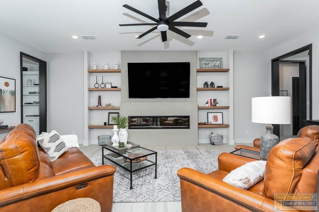 Enjoy easy lakefront living at 100 Torrey Pines—Available for long-term rental. This furnished home features a covered porch and patio with serene water views, tile floors throughout, and a modern kitchen with stainless steel appliances. Relax by your private pool or take advantage of the community amenities, including two pools, tennis courts, and an optional discounted golf membership. Ideally located just a short 15-minute drive to South Padre Island, this home blends comfort, convenience, and resort-style living.
