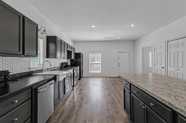 Downtown living at its finest! This charming single-story offers is a well-designed living space on a low-maintenance lot. Inside, you’ll find an open floor plan with modern upgrades throughout. The spacious living area is filled with natural light and flows effortlessly into a beautifully renovated kitchen featuring granite countertops, stylish cabinetry, an island with seating, and stainless steel appliances. The kitchen also includes a walk-in pantry and eat-in dining space—ideal for everyday living and entertaining. The oversized primary suite provides a peaceful retreat with its own private bath, dual sinks, granite-topped vanity, and a large walk-in closet. Two additional bedrooms are generously sized and share a second full bathroom with matching updates. Vinyl plank flooring and designer finishes run throughout the home, offering both durability and contemporary appeal. Additional features include central HVAC, updated lighting, fresh interior paint, and a utility room for added convenience. The exterior offers off-street parking and minimal yard maintenance—perfect for those seeking ease and simplicity. Conveniently located near schools, shopping, dining, and downtown Denison, this property is just minutes from Hwy 75 and offers quick access to the broader Texoma area. Don’t miss this opportunity to own a fully refreshed home in an established neighborhood. Schedule your private showing today!