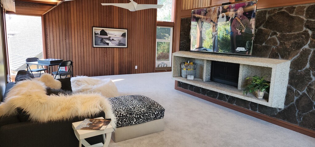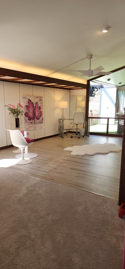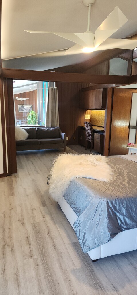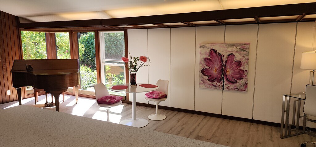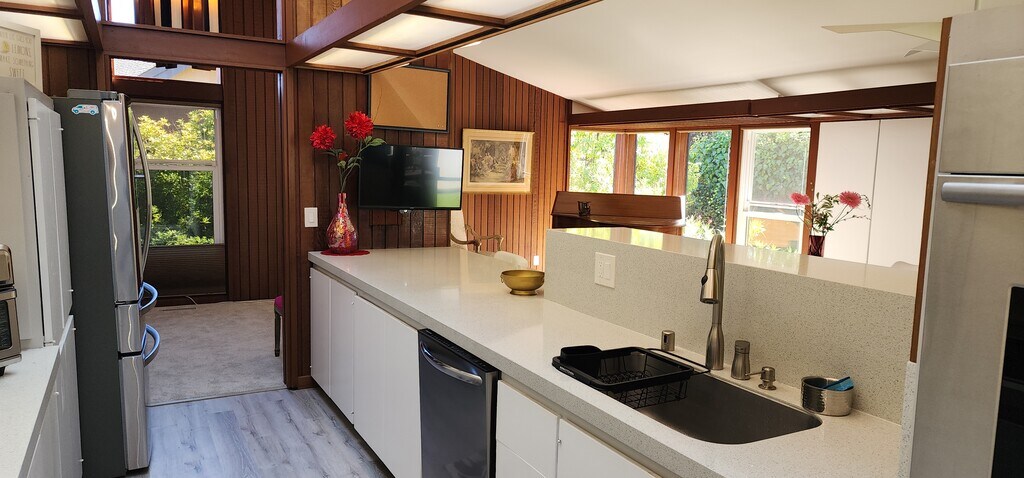 Rare Architectural designed Furnished 3 bedroom + private office , 2 Full Baths Step into this beautiful masterpiece and enjoy... Rm 1. Master ensuite is 400+sf with two rooms( one large bedroom ensuite + a unique and private built in office, with oodles of filing drawers and cabinets for all your important office needs. Walk in shower, which includes a step down to a relaxing soaking Tub, all with beautiful views of the SF Bay from your bed and your office and from every direction of the rooms, queen bed, with comfy bedding, couch and chair 6 large closets. This grand ensuite comes with natural light and blackout shades and drapes when needed, Ceiling Fan 2nd bedroom is a large and spacious bedroom with views of the hills, along with all the natural wildlife you could ever imagine, right from the leisure of your room with large viewing windows, animals walking through at all times of the day, all on your secluded and private hills, in your backyard. This spacious bedroom comes with 3 large built in closets, natural light, blackout shades, comfy bed with down covers and pillows, a nice big chair to relax and plenty of space to add a desk. Ceiling fans Room 3 is a cozy and a little smaller than other two rooms, but very sufficient, which comes with a beautiful garden view and views of the hills and wildlife, blackout drapes a cozy bed or not and 3 large closets. Ceiling Fan This 3 bedroom+ private office, 2 bath Mid-Century Modern Marvel nestled in the highly desirable, sought after Racquet Club Estates in the hills above Sun Valley, on the San Rafael, San Anselmo border. This home has been strategically remodeled while keeping its Mid-Century character. Freshly painted, new carpets, laminate and marble flooring, remodeled kitchen and bathrooms, new air-conditioning, new hot tub and much more! Ceiling Fans are offered in every room as well as blackout drapes and shades in the bedrooms! This Bright and spacious Air Conditioned home seamlessly blends the outdoor with the indoor living. Soaring with Cathedral Ceilings, Skylights and floor to Ceiling windows that flood this home with natural light, while framing picturesque views from every room in the house. This expansive and newly remodeled kitchen boasts all new stainless steel appliances which include double oven, glass stove-top, dishwasher, microwave, air fryer-toaster oven, large French door Refrigerator and your own built in TV, so not to miss your favorite show, while cooking up your favorite dish or two, while also offering plentiful cabinetry with built in storage throughout. A cozy family room with a wet bar and a breakfast bar make entertaining a breeze. 2000 sf of decking in the front and back yards with a pergola complete with built in BBQ, sink and food prep area, perfect for your outdoor dining, relaxing and stargazing. There are multiple areas in this large and private backyard to find your own special spot to relax and unwind. Hot Tub hidden in its own little Oasis, to be used or not. Wildlife and Nature surround you in this Serene, Retreat like Setting. Just minutes from the Rafael Racquet Club, Shopping, trails, parks, beaches and the charm of both downtown San Anselmo and San Rafael. An easy 25 minute trip across the Golden Gate Bridge to spectacular, San Francisco! We are very close to many great hospitals: Marin Health Medical Center 4 miles Novato Community Hospital(Sutter) 12 miles Kentfield Hospital-2.5 miles Kaiser Hospital San Rafael- 6 miles VA Hospital San Francisco-18 miles UCSF Hospital San Francisco 18 miles The large living room stuns with raised granite fireplace and a flagstone wall while offering stunning views of the sf bay and surrounding hills adding a front deck to catch even more views from a different angle. You will find a large Movie Theatre TV for your favorite flicks as well as a game table for fun playing time! Albeit the home has a carport instead of a garage there is ample storage on the first floor of the home for items typically kept in a garage, which also adds to its unique character, not to speak of added storage sheds to tenants use that are found in the covered carport. This Rare rental Opportunity offers timeless style and comfort, immersing you in a profound connection with nature. You will often see deer, coyote, jack rabbits, frogs, lizards, squirrels, bobcats and Many birds of all species, just while lying in bed and from various parts of the house, inside and out. 1 year lease. No Sub-leasing No smoking or drugs No Cats! one small dog may be negotiable on a case per case basis with pet rent.