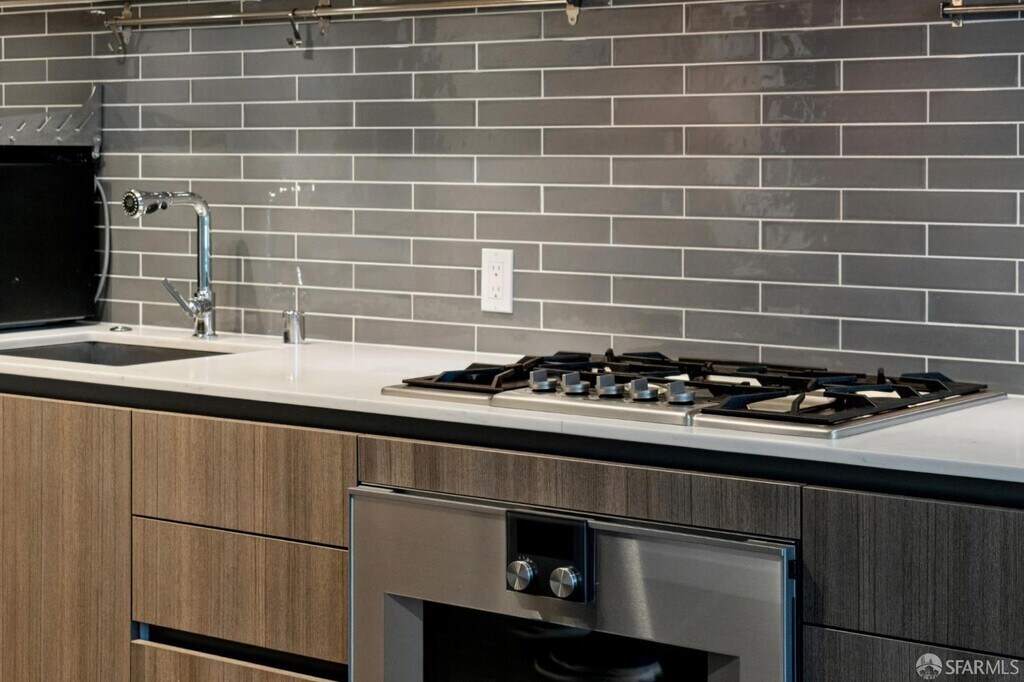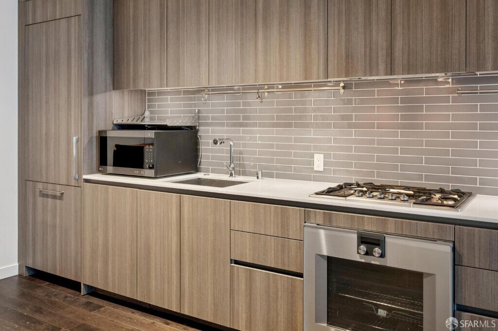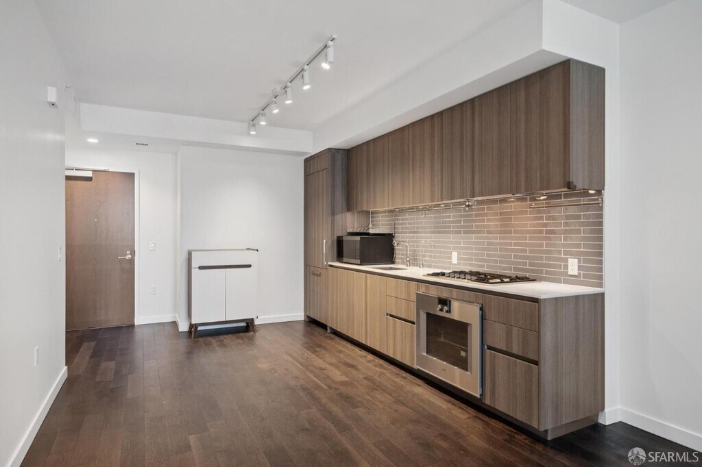 ONE Mission Bay is a modern retreat ideally located at the crossroads of Mission Creek and Oracle Park. Tower 620 is a 1BD/1BA condo that is a perfect balance of modern city living and urban oasis retreat. The unit features a Chef's kitchen fully equipped with Gaggenau appliances, Kohler fixtures, Porcelanosa tile, Domus & Domus cabinetry with under-cabinet LED lighting, Vadara quartz countertops, and dark hardwood flooring in the living and dining areas, central A/C and heating, in-unit Bosch washer and dryer, and a deeded garage parking space. Residents enjoy the resort-like amenities which include a 24-hour door person, fitness center, outdoor heated pool and spa, saunas, BBQ area, resident dining and lounge areas; a large terrace with a fire pit, cabana, barbecues, and outdoor dining; a state-of-the-art fitness center; a business center and library with private meeting rooms; a reservable guest suite. Close proximity to amenities such as Whole Foods, Trader Joes, Costco, Gus's Market, Oracle Park, Chase Center, UCSF Medical Center, many parks, cafes, restaurants, and shopping. Conveniently located to major commuting routes like Caltrain, Bart, and freeways. Sorry, no pets.