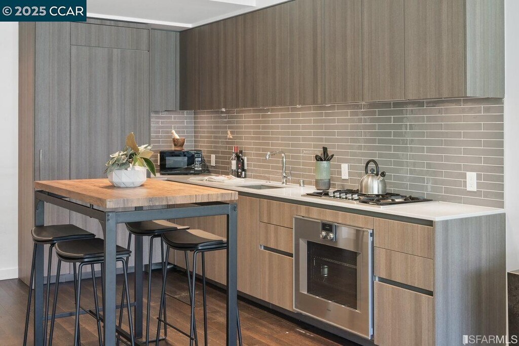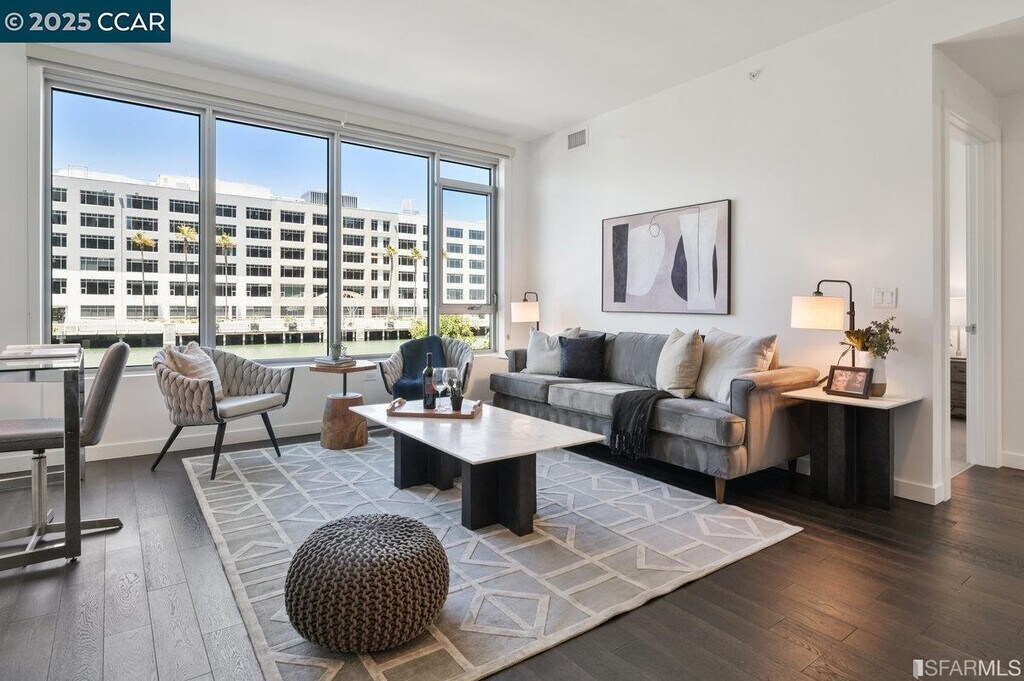 Experience elevated waterfront living in this refined residence at One Mission Bay,where modern design meets sweeping views of Mission Creek,the park,and Oracle Park beyond. The open-concept living space is filled with natural light from oversized windows,creating a seamless flow between indoors and out. The sleek kitchen is appointed with quartz countertops and premium Gaggenau appliances,including a five-burner gas cooktop and dishwasher. Hardwood floors anchor the living areas,complemented by central heating and air conditioning for year-round comfort. The sunlit bedroom offers tranquil channel views,while in-unit laundry and secure one-car parking add everyday ease. Residents enjoy an impressive suite of amenities,including a state-of-the-art fitness center,heated outdoor pool,fire pits,BBQ areas,cabanas,game room,resident lounges,and a 24-hour door person. Elevate your work-from-home routine with access to private conference rooms or a cozy fireside library. All of this in an unbeatable location just steps from dining,grocery stores,entertainment,and CalTrain for a seamless South Bay commute.