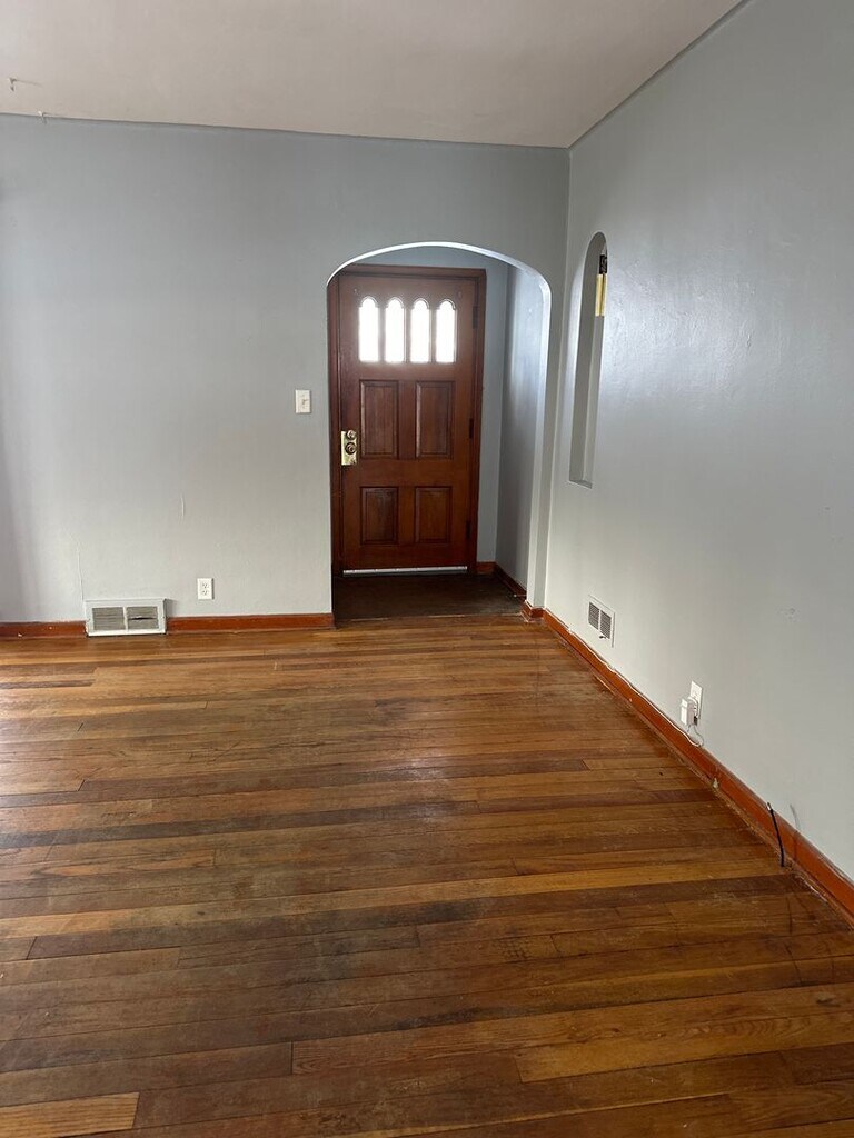 This is a great corner lot home with a fenced in yard and a double stall garage. New Stove and Refrigerator are furnished Hardwood flooring in dining, living and both main floor bedrooms. Sliding doors in dining room lead to a deck off the back of the house. Full bath is located on the main floor. Upper level is one very large bedroom. Unfinished basement with washer dryer hookups. Fresh paint through out. Don' let this one slip away! Fill out the NO CHARGE application online at Rent 975.00 Lincoln, George Washington and Waterloo East Schools Pets considered with additional monthly charge No Section 8 Call Deb Monday - Friday 9 - 5 with any questions.