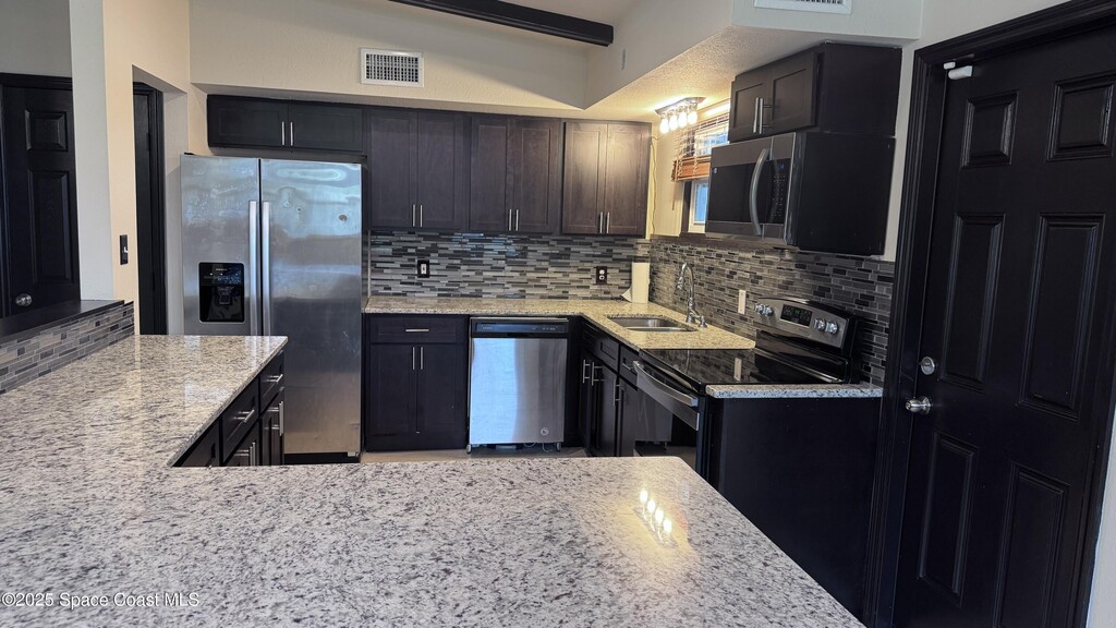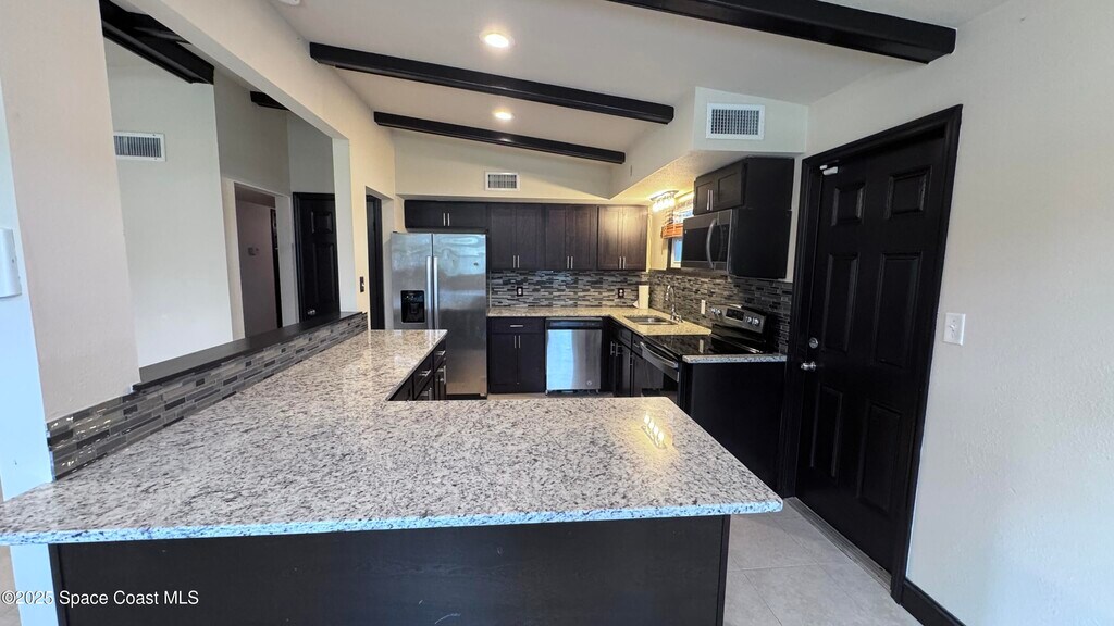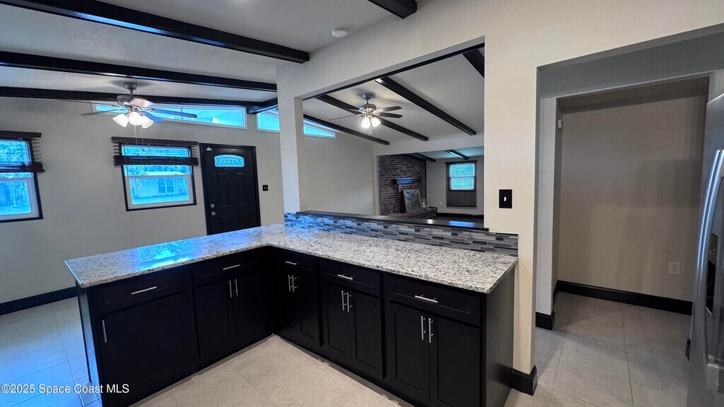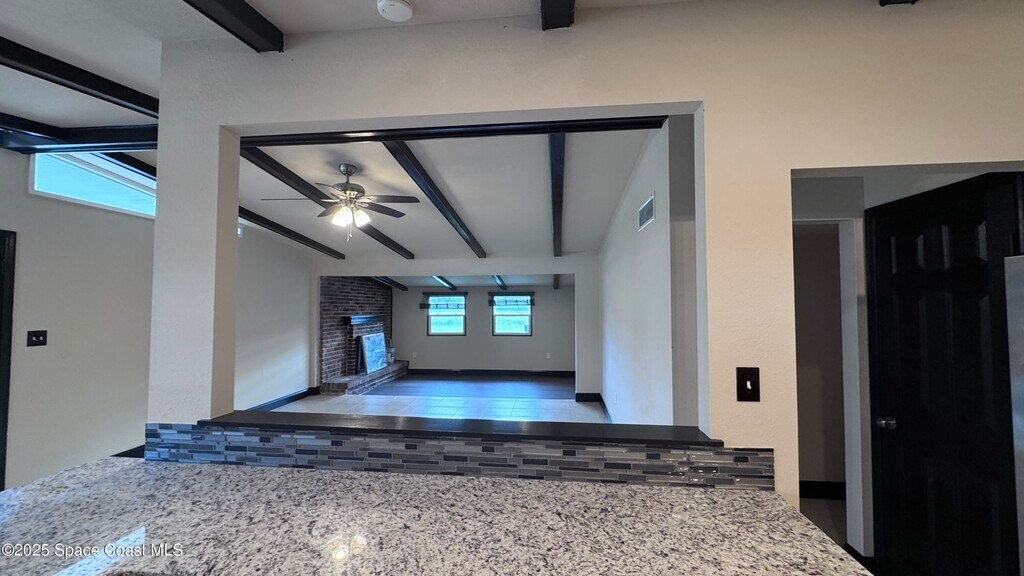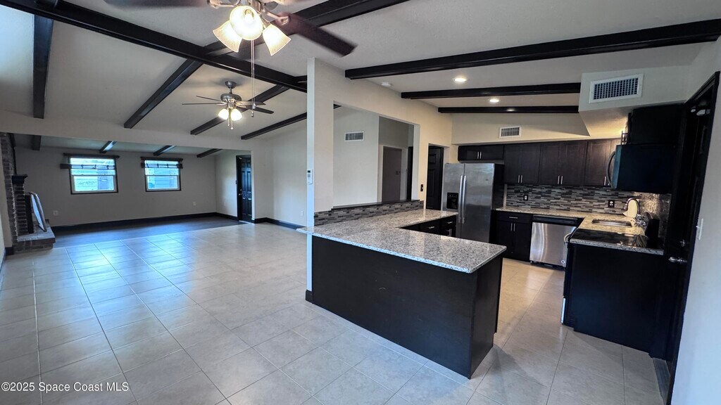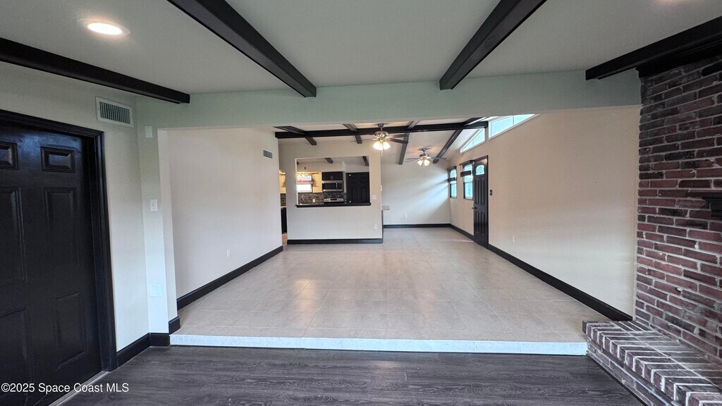 Welcome home to this beautifully updated 3 bedroom,2 bathroom gem on a spacious corner lot in Rockledge with no HOA. Step into a bright and welcoming layout featuring a stylish kitchen with rich wood cabinets,granite countertops,stainless steel appliances,and a matching backsplash. The open living and dining areas include upgraded lighting,tile and laminate flooring throughout,and a decorative fireplace that adds charm and character (not warranted for use). Both bathrooms are fully remodeled with matching cabinetry,granite counters,and custom tilework. Enjoy two private covered porches and a generous yard perfect for relaxing,entertaining,or soaking up the Florida sunshine. There is plenty of parking with a carport and extended driveway. Garage not included with rental. Ideally located near shopping,dining,parks,and major roadways. This home offers the perfect mix of comfort,style,and location. Schedule your showing today before it is gone!