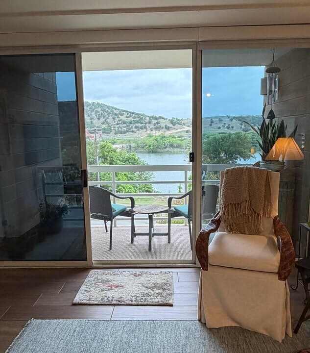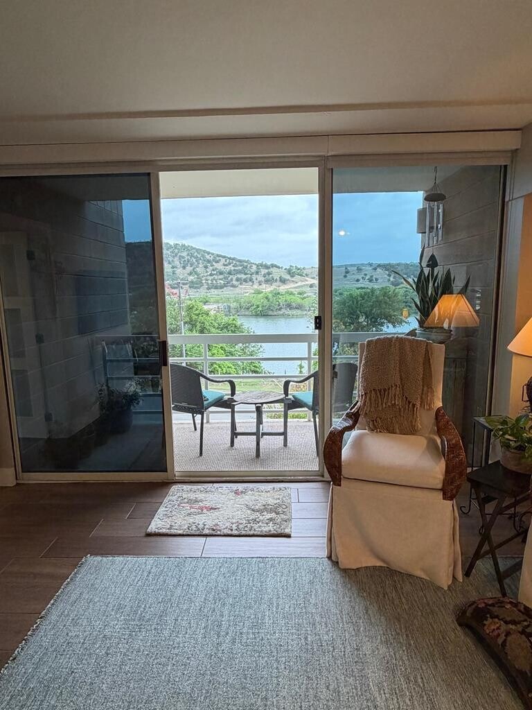 Exquisitely remodeled 2 bedroom condo overlooking the Guadalupe River. You will love the quality, craftsmanship and attention to detail. 1777 sq ft of refined living space includes 2 bedroom/2 bath, office, open kitchen, spacious living area and laundry room. Covered porches line the main living area and primary bedroom. The wall of windows provides an exceptional view of the river and the hills. Shade is delivered by a beautiful Arizona Ash. This is a must see" condo and will be valued by anyone desiring a true lock and leave property."
