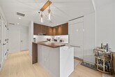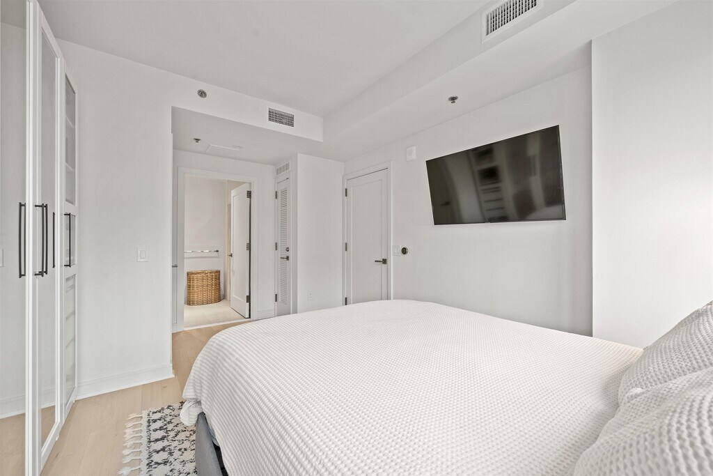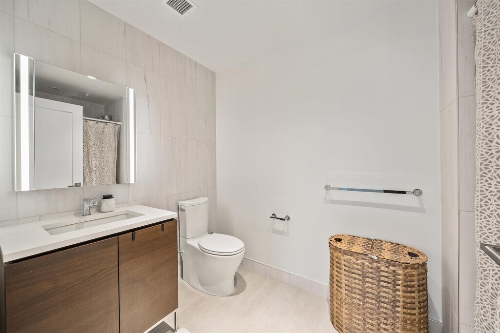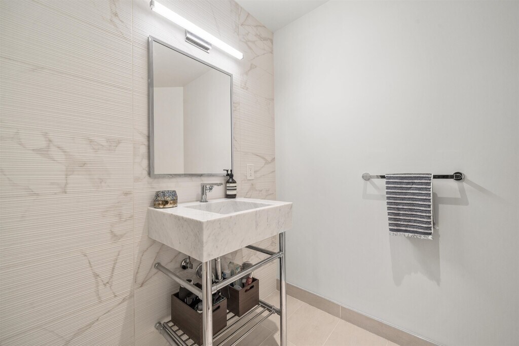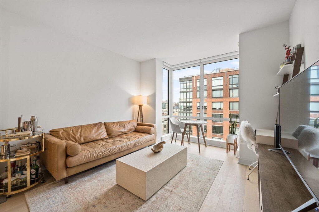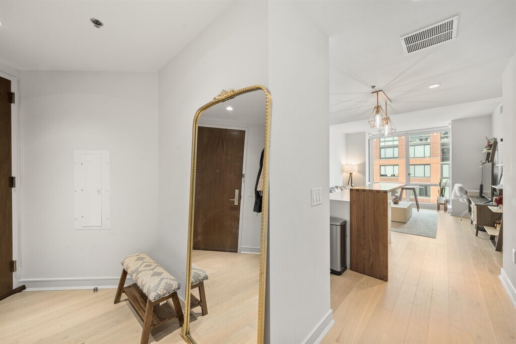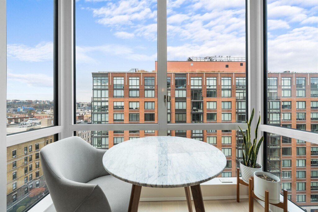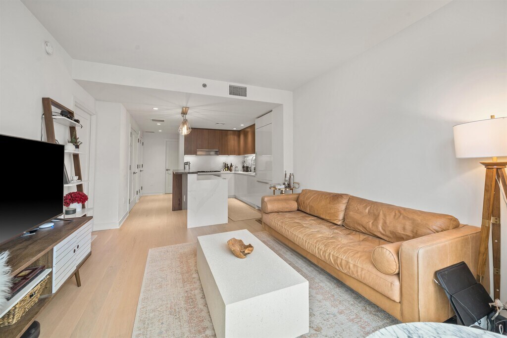 Stunning 1 bed, 1.5 bath home in 1000 Maxwell, Toll Brothers' newest Gold Coast building. Northwest sunset views and partial east NYC/river views provide the open floor plan with sun all day long. The chef's kitchen includes stainless steel Thermador and Bosch appliances, a breakfast island, quartz countertops and walnut cabinetry custom crafted by Scavolini. The spacious bedroom has custom built-in cabinets, a walk-in closet, and spa-like ensuite bath with matching walnut vanity. The home also features a half bath for guests, 5 white oak flooring, central AC, and an in-unit washer/dryer. The community's luxury amenities include 24/7 concierge and security, a gym, pool, playroom, rooftop deck with BBQ grills, community room, workspace and shuttle service to and from the Path. This boutique building of just 58 homes is conveniently located near the NYC Ferry, bus stop, shops, restaurants, and everything that uptown Hoboken has to offer. Move in ASAP."